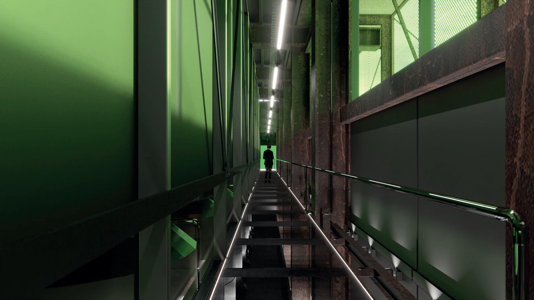 En el exterior de las naves industriales y en parte de la galería de arte los tabiques serán de hormigón ciclópeo hidro lavado con una buña superior de 5x5cm En el interior los muros serán de hormigón visto con encofrado de fenólicos con una cara epoxipada.
