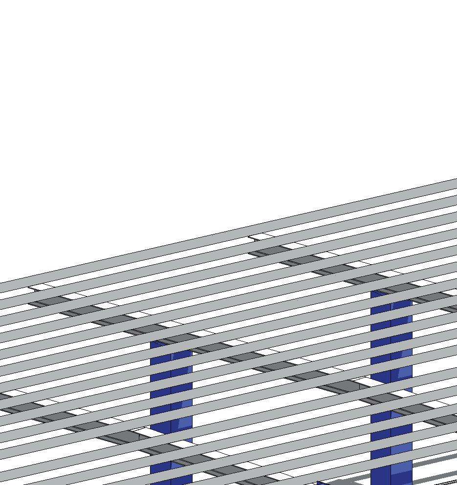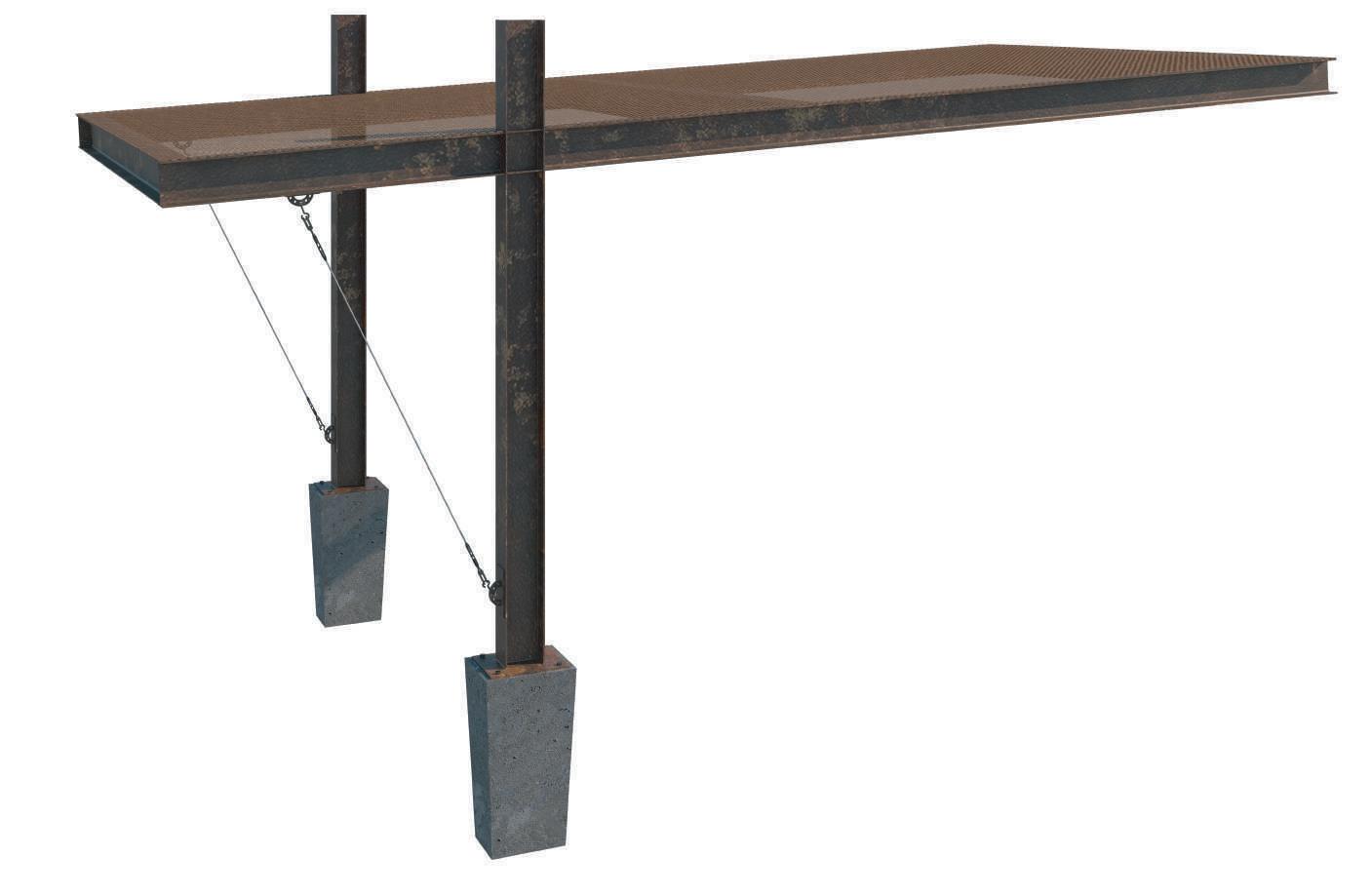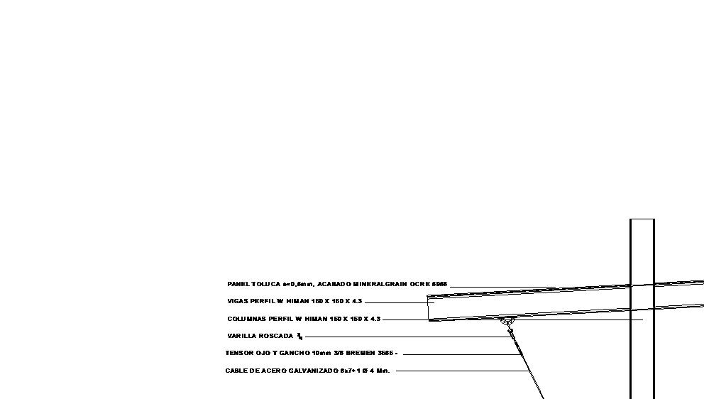 Espesor de 6mm. Acabado pintado mineral grain ocre. Soldado a viga perfil W HIMAN 150 x 150 x 4,3.