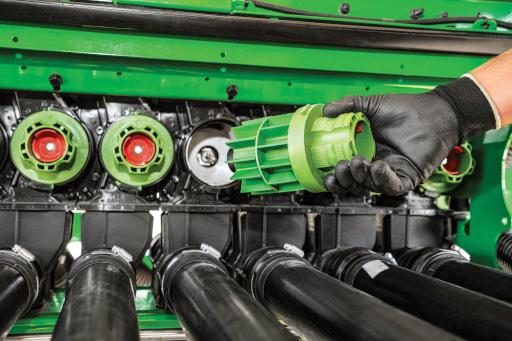 The AccuRateTM meter precision upgrade brings a host of improvement to your existing air cart, significantly boosting seeding accuracy with the integration of individual electric meters for each primary run. By leveraging the power of electric meters, John Deere offers customers unprecedented precision in seeding across the entire tool width.