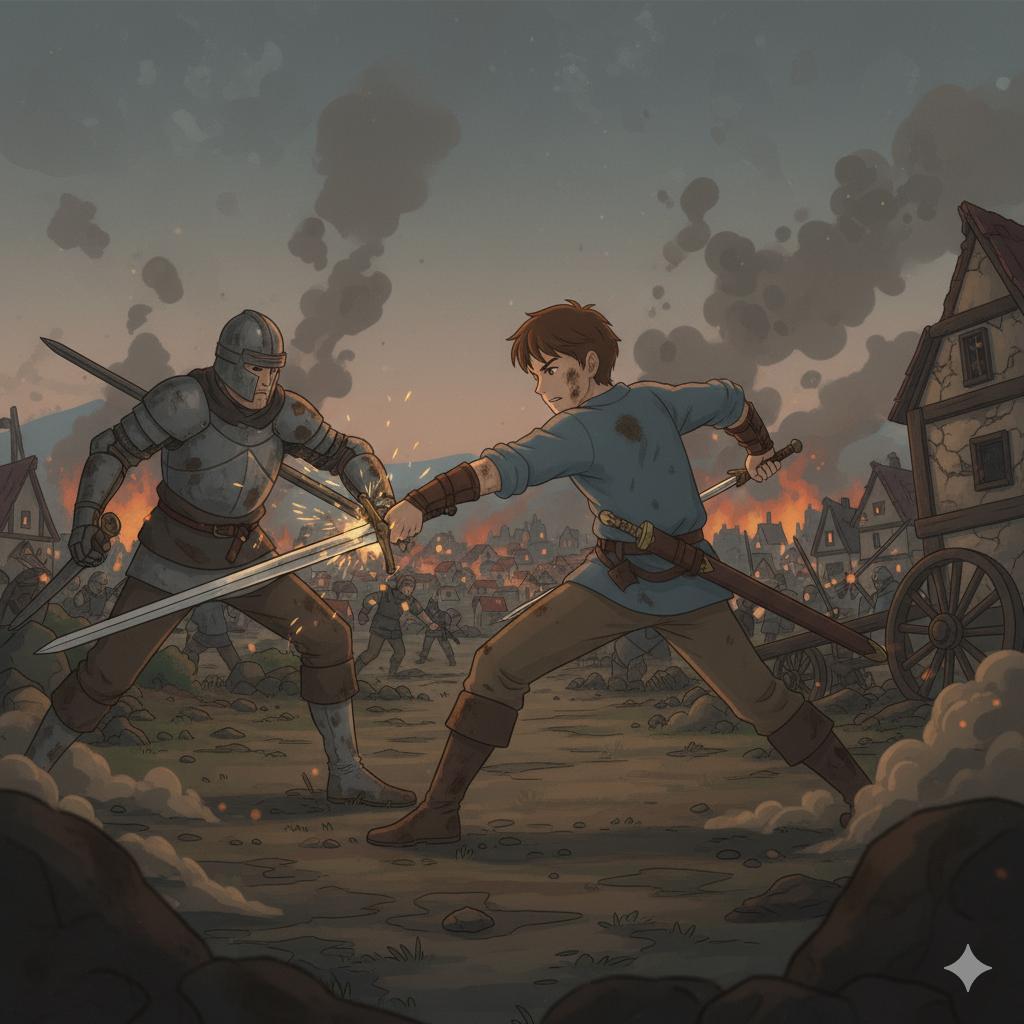 Un soldado le ofreció la oportunidad de luchar; si ganaba un duelo de espadas, podría unirse a la caballería. Heder acepto y sorprendentemente, demostró un don natural, ganando el combate fácilmente.