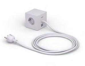 A cube-shaped multi-socket in various colours is available as an accessory for the lamp, with cable and plug equipped with three 230V Schuko sockets and two USB-C ports, max power 2.3KW, to be placed on a table. Magnetic base.