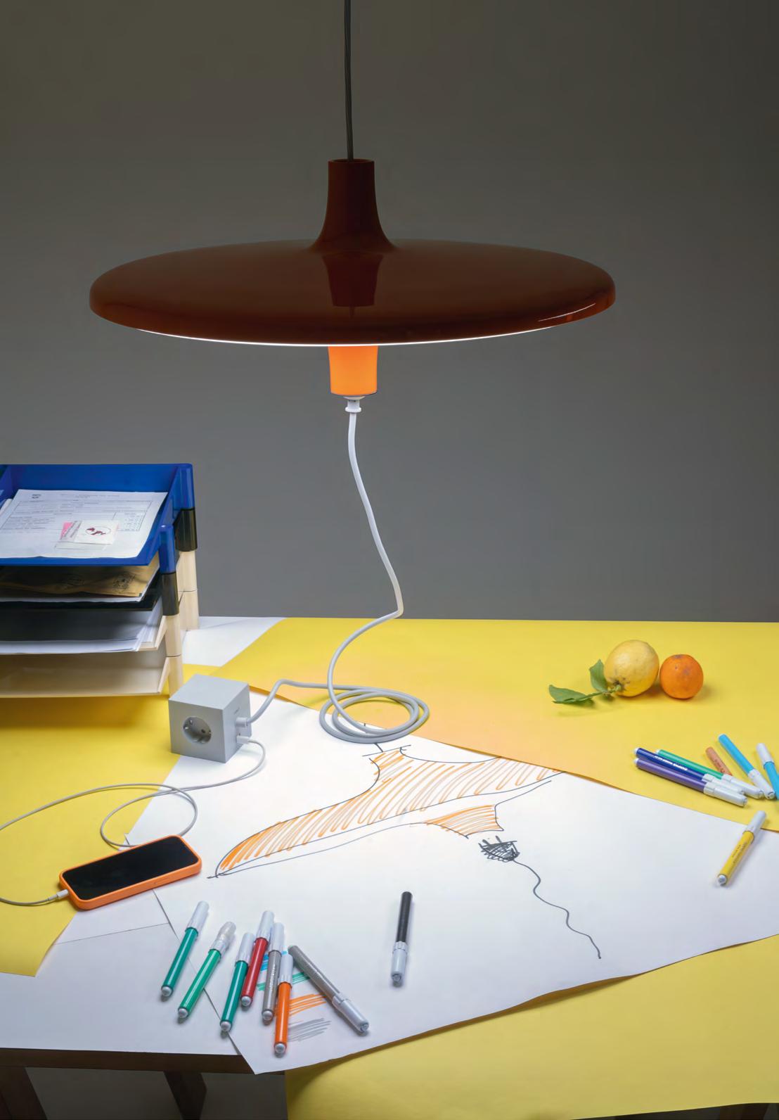 Grazie alla presa di corrente nella parte inferiore del suo diffusore, non sei più vincolato dall’averne una a muro vicino al tavolo. Con questo progetto Studio Natural ha voluto non solo semplificare l’attività lavorativa da casa, ma anche facilitare l’uso di dispositivi che necessitano di corrente elettrica, trasformando il tavolo da pranzo in una vera e propria officina funzionale al servizio della creatività di chi la utilizza.