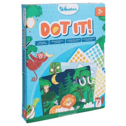 Dot It -pakkaukset sisältävät pieniä erivärisiä ja -kokoisia pyöreitä tarroja, joilla voi värittää mukana tulevat kuvakortit.