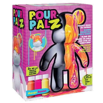 Pour Palz -nalle kaipaa väriä! Päästä luovuutesi valloilleen ja taiteile ainutlaatuinen keräilyhahmo. Sekoita maali, kaada se nallen päälle ja anna kuivua. Lopputuloksena on täysin ainutlaatuinen nalle. Hahmon korkeus 22 cm. 5+