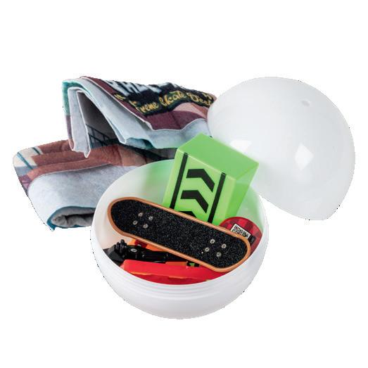 Yllätyspallo sisältää kaksi limaväriä, kaksi pientä keräilyhahmoa, koristeita ja liittimiä. Sekoita limat ja koristeet ja varastoi palloon. 5+