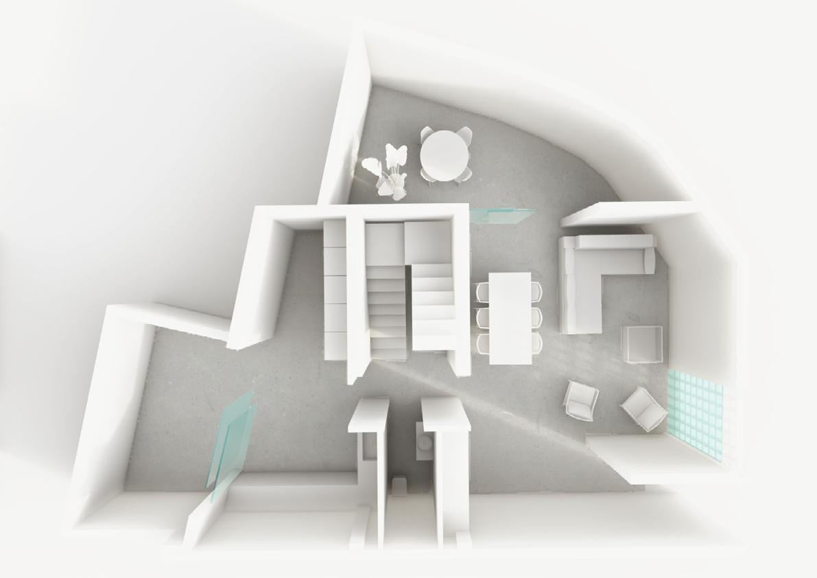 La vivienda en esquina también cuenta con un acceso individual desde el sótano conectando así esta planta donde se ubican las plazas de aparcamiento con el interior de cada vivienda.