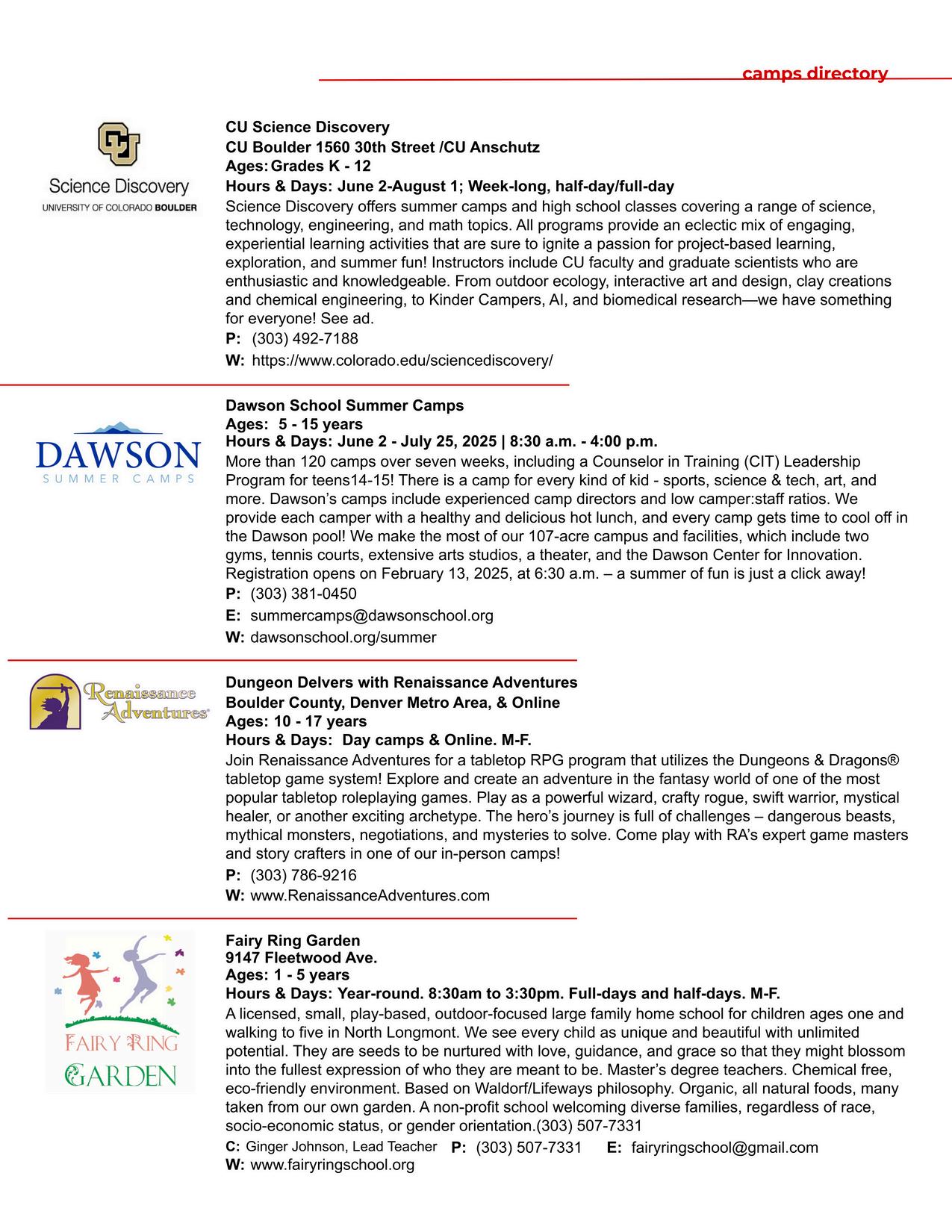 CAMPS DIRECTORY