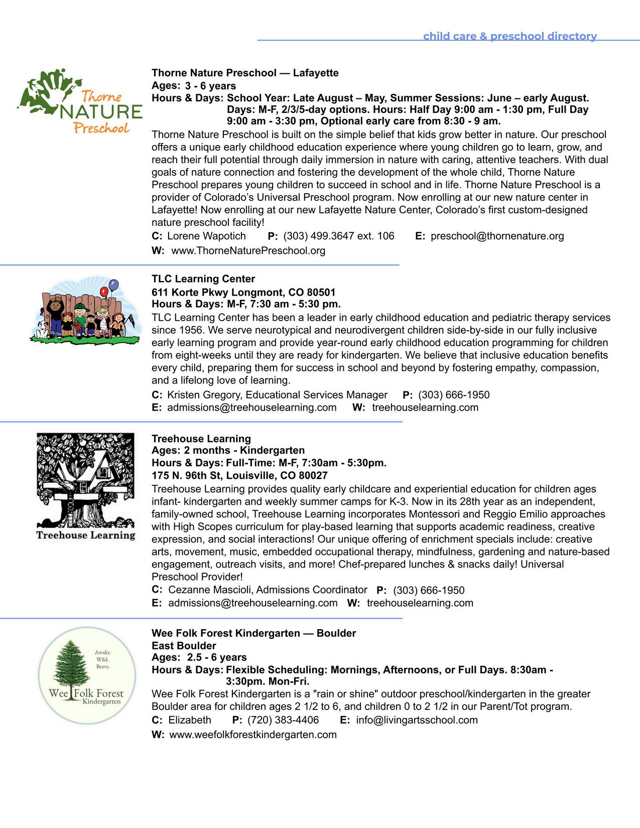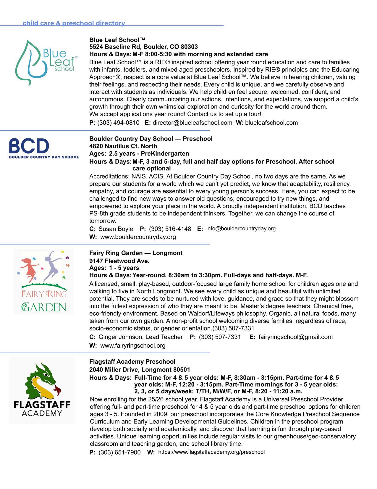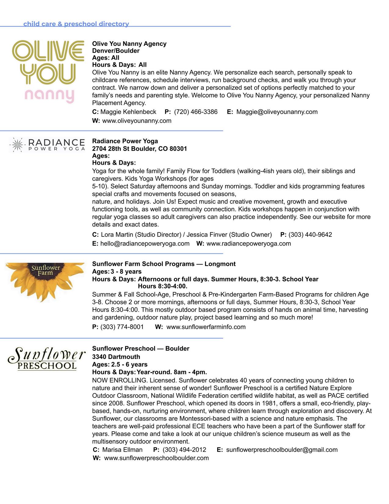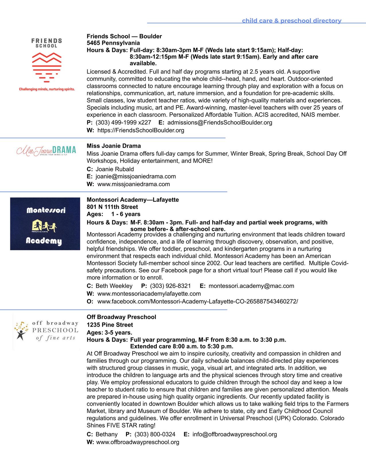 CHILD CARE & PRESCHOOL directory