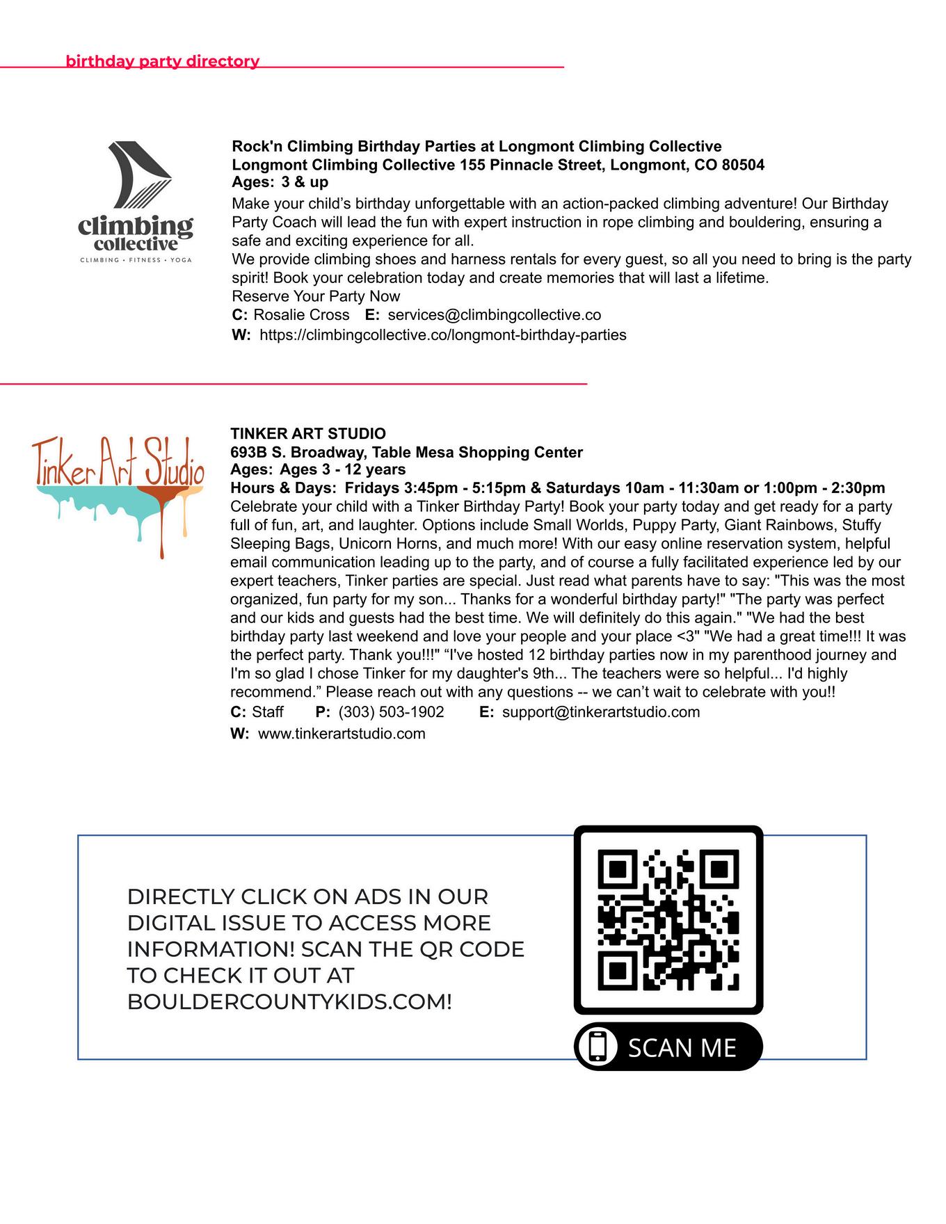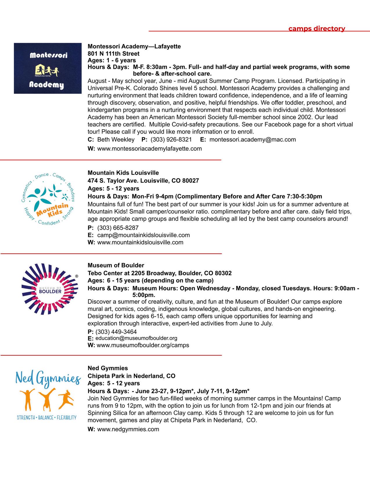 Want to get noticed in a magazine that distribute thousands of copies to hundreds of locations throughout Boulder County? Email us at advertising@ bouldercountykids com