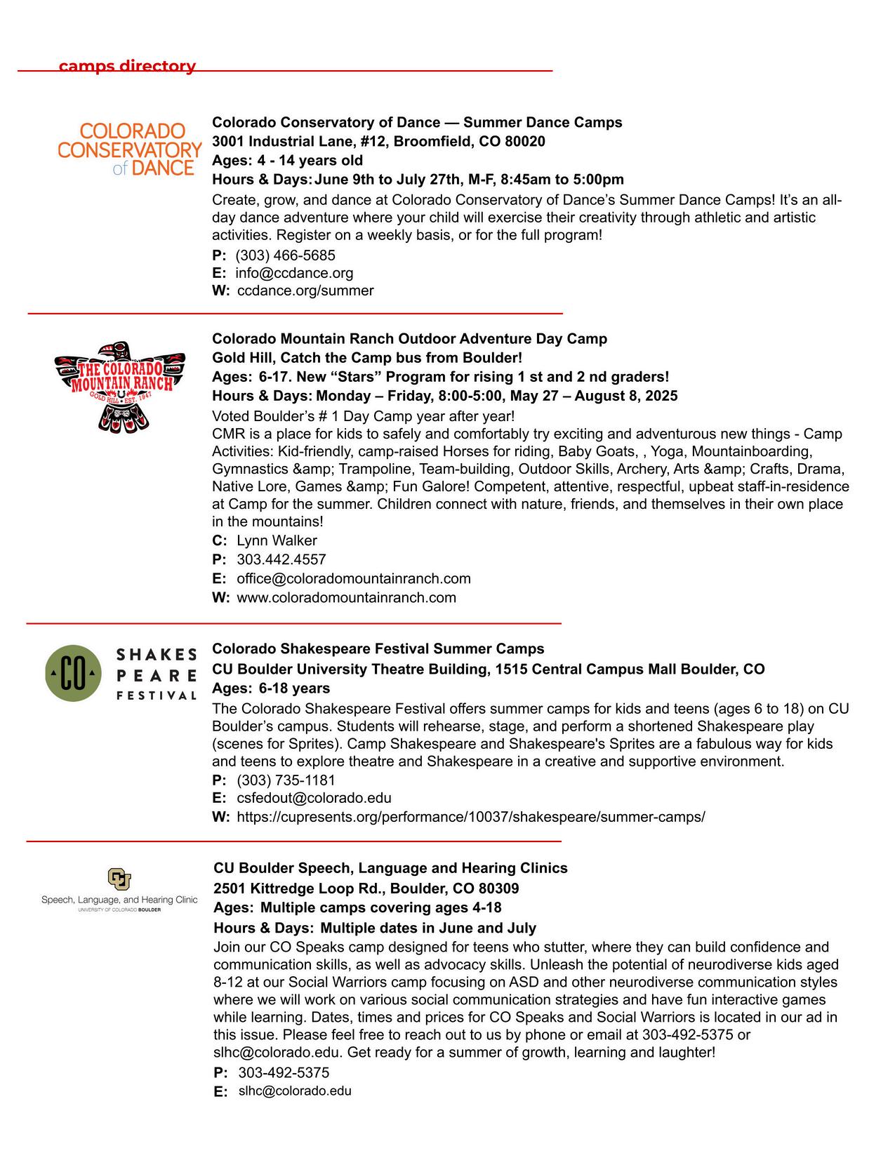 ALL NEW CAMPS DIRECTORY ALL NEW CAMPS DIRECTORY FOR SUMMER 2025 FOR SUMMER 2025