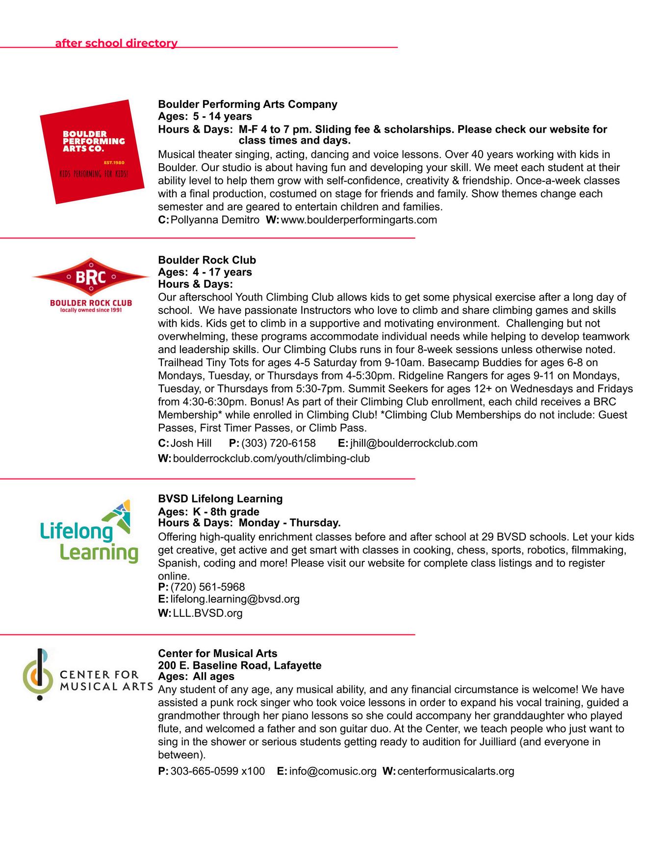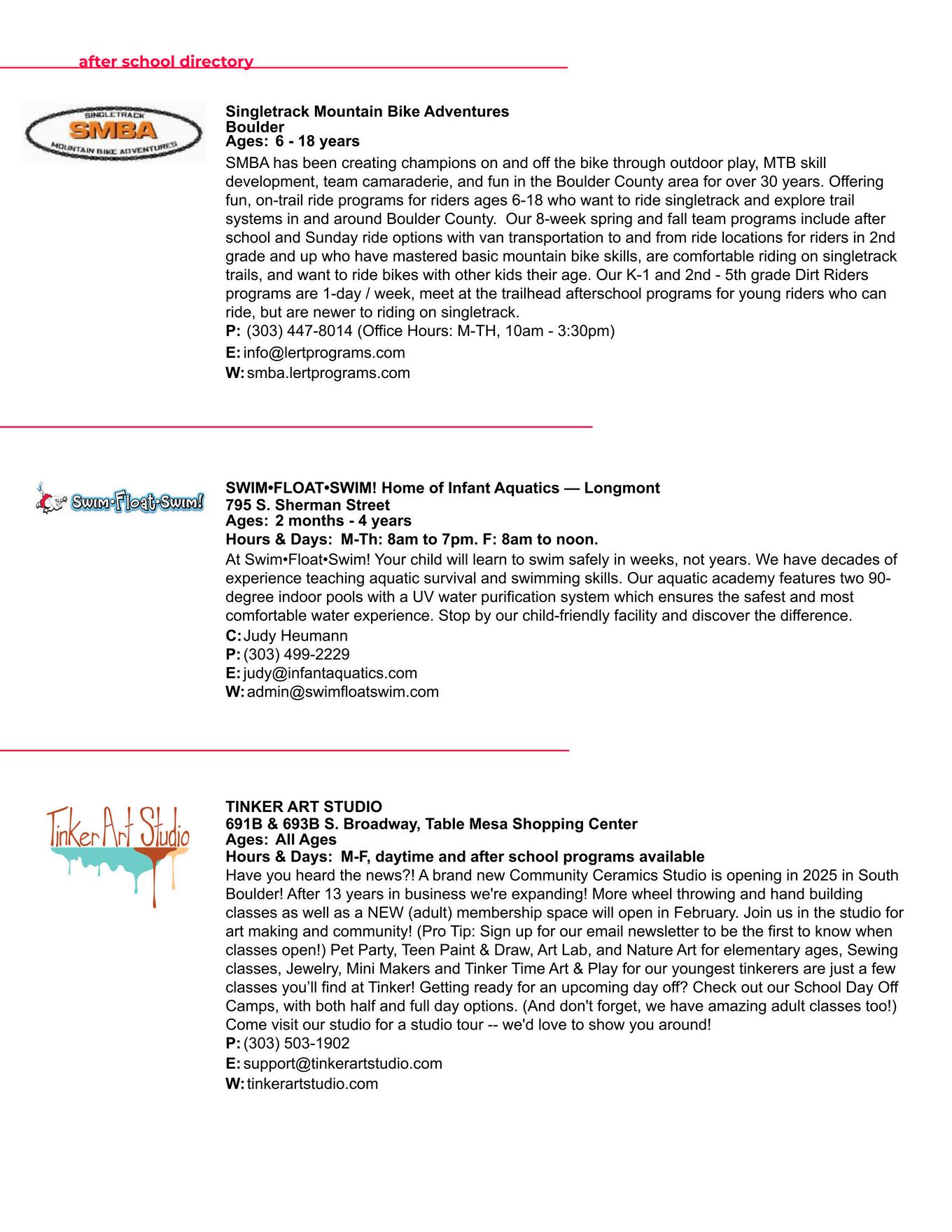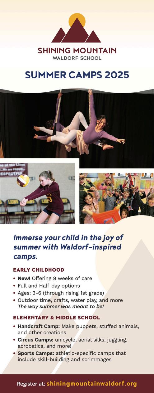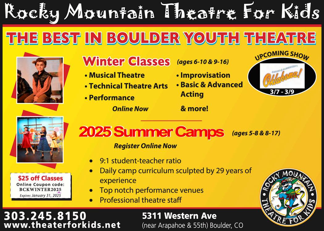 BOULDER COUNTY KIDS is a division of Martin House Publications, Inc Published quarterly in February, May, August, and November Mailing address: 1464 E Easter Cir Centennial, CO 80122 Phone number: (303) 728-4798 Copyright 1995 to 2025 by Boulder County Kids All rights reserved Reproduction in whole or in part without written permission prohibited Boulder County Kids encourages your submission of articles, photographs, and ideas We reserve the right to edit all submitted material All submissions will be considered for publication Viewpoints of the articles are not necessarily the viewpoints of Boulder County Kids Materials will not be returned Advertising is accepted at the discretion of the publisher Please go to www bouldercountykids com for more information