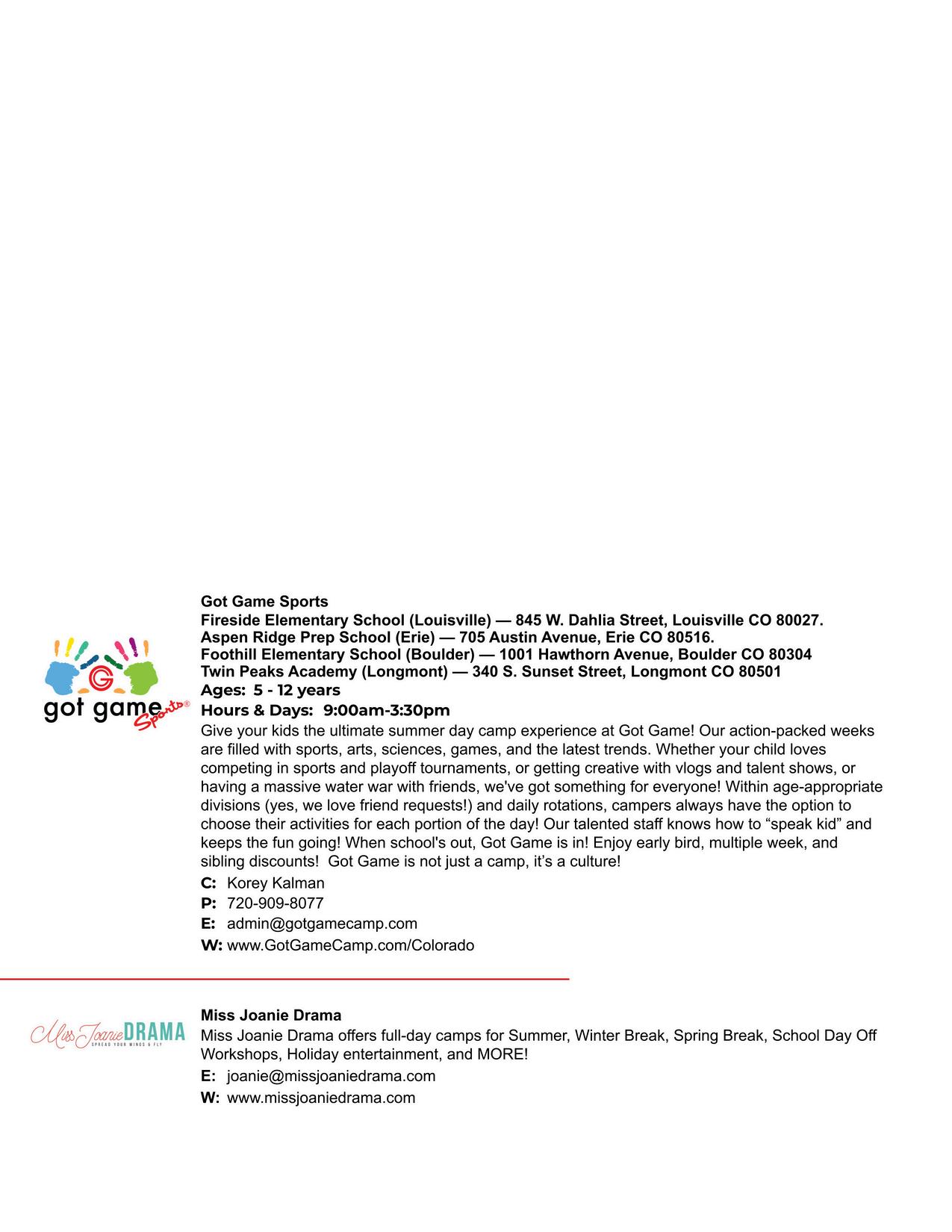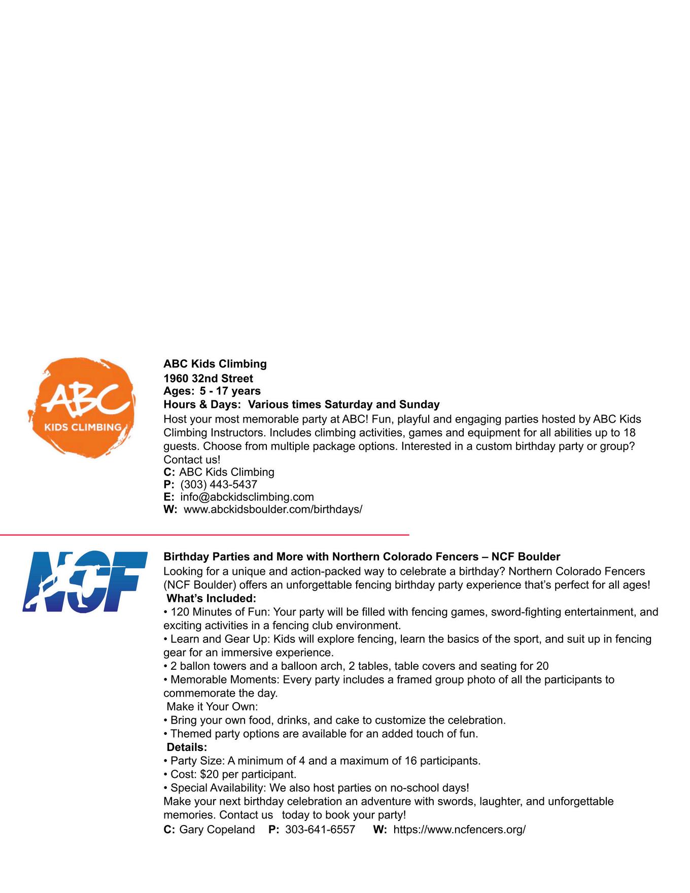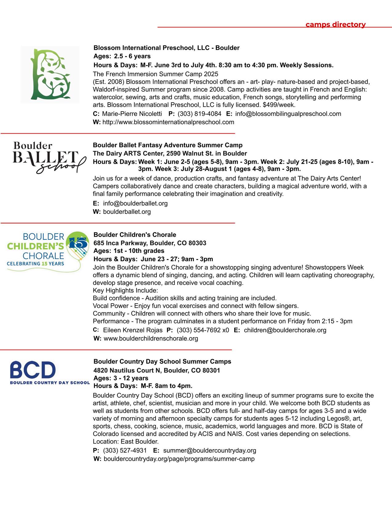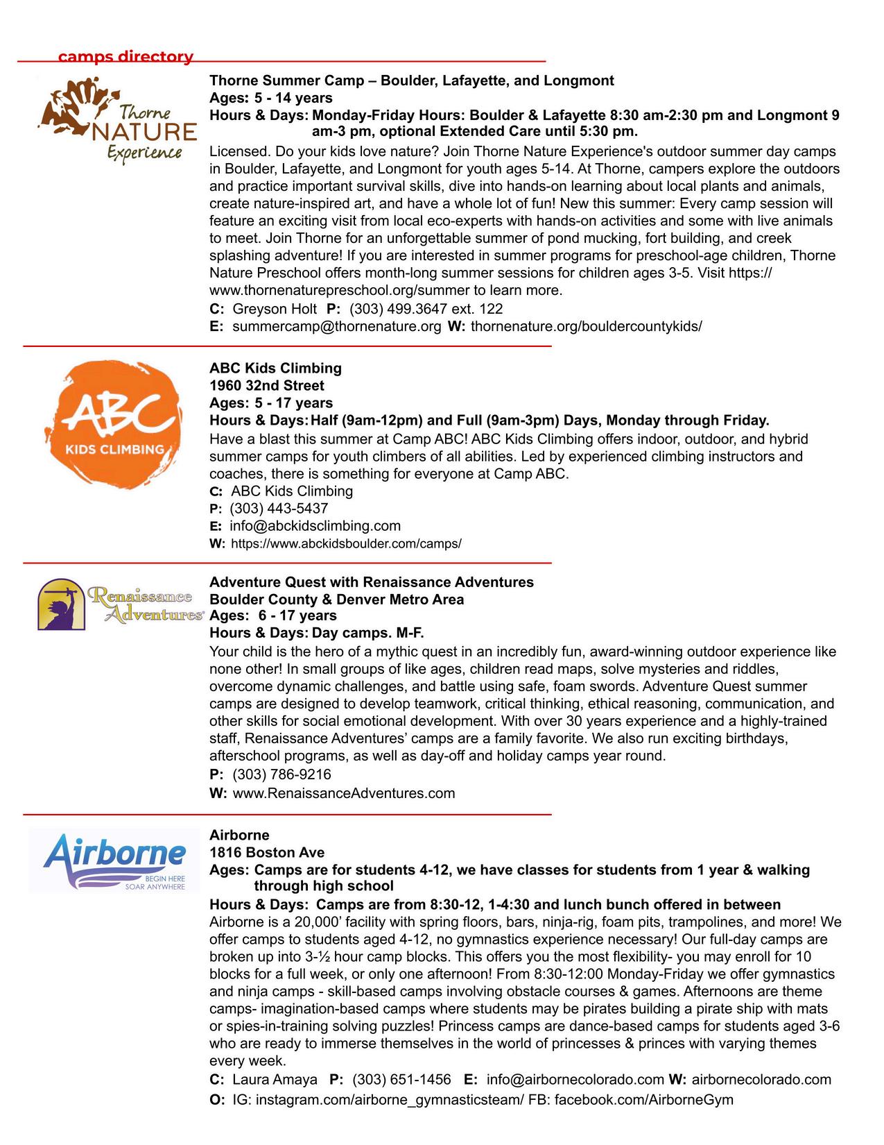 BOULDER COUNTY KIDS is a division of Martin House Publications, Inc Published quarterly in February, May, August, and November Mailing address: 1464 E Easter Cir Centennial, CO 80122 Phone number: (303) 728-4798 Copyright 1995 to 2025 by Boulder County Kids All rights reserved Reproduction in whole or in part without written permission prohibited Boulder County Kids encourages your submission of articles, photographs, and ideas We reserve the right to edit all submitted material All submissions will be considered for publication Viewpoints of the articles are not necessarily the viewpoints of Boulder County Kids Materials will not be returned Advertising is accepted at the discretion of the publisher Please go to www bouldercountykids com for more information