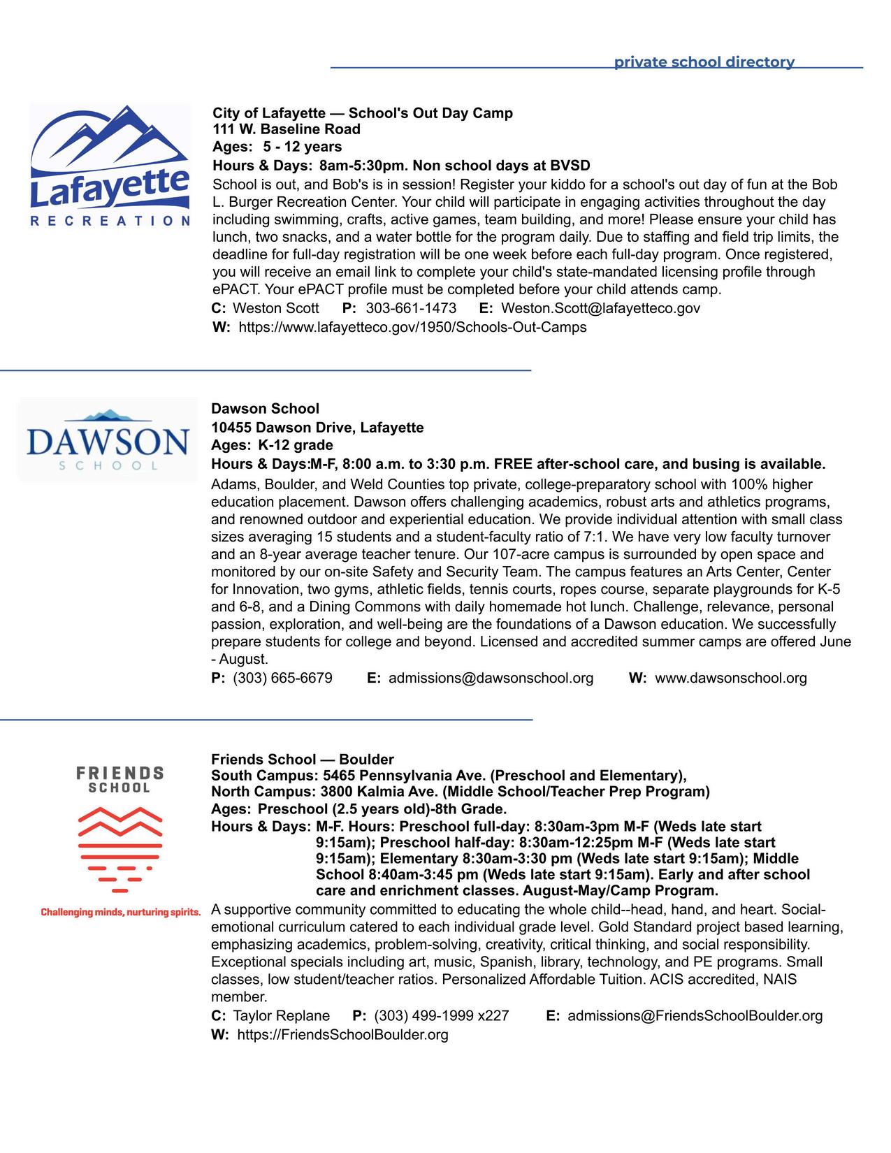 directory PRIVATE SCHOOL