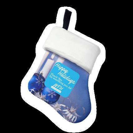 The Merry Christmas Stocking is a must have for every year-end giveaway. This quality Christmas stocking features full-colour holiday images and logo or your own design sublimation printed. Optional personalization available with names of all your favourite elves!