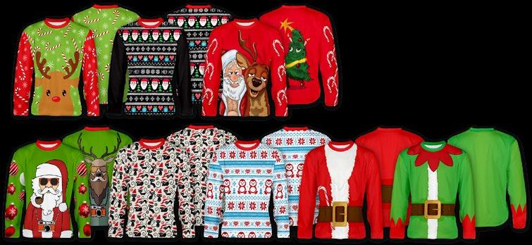 Cette année, les vêtements sont en tête de liste lorsqu’il s’agit de cadeaux. Aussi bien en tant que cadeau qu’en tant qu’article de marque, ces chandails festifs feront une déclaration audacieuse et réchaufferont tous ceux qui les porteront. Des modèles en stock ou personnalisés sont disponibles pour compléter nos masques festifs!