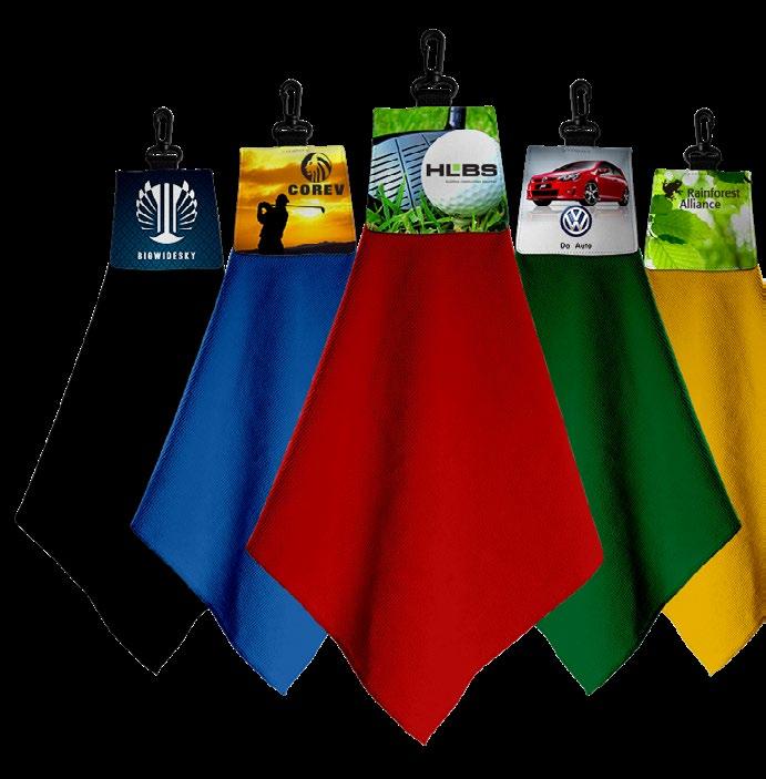MICROFIBER GOLF TOWEL WITH SUBLIMATED HEADER