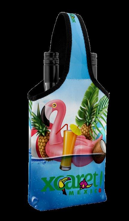 Dye sublimation printed with our eco-friendly water base fade resistant ink with your unique design and logo, combines functionality, insulation and a touch of style to make transporting your wine bottles easy.
