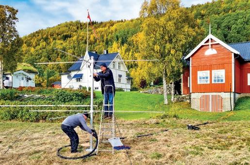 Die Techniker Jens Wedrich (v.l.) und Thomas Barth vom Kühlungsborner Institut bauen die Antenne auf dem Anwesen von Alert Kristian Gaard in Norwegen auf. (Foto: IAP)