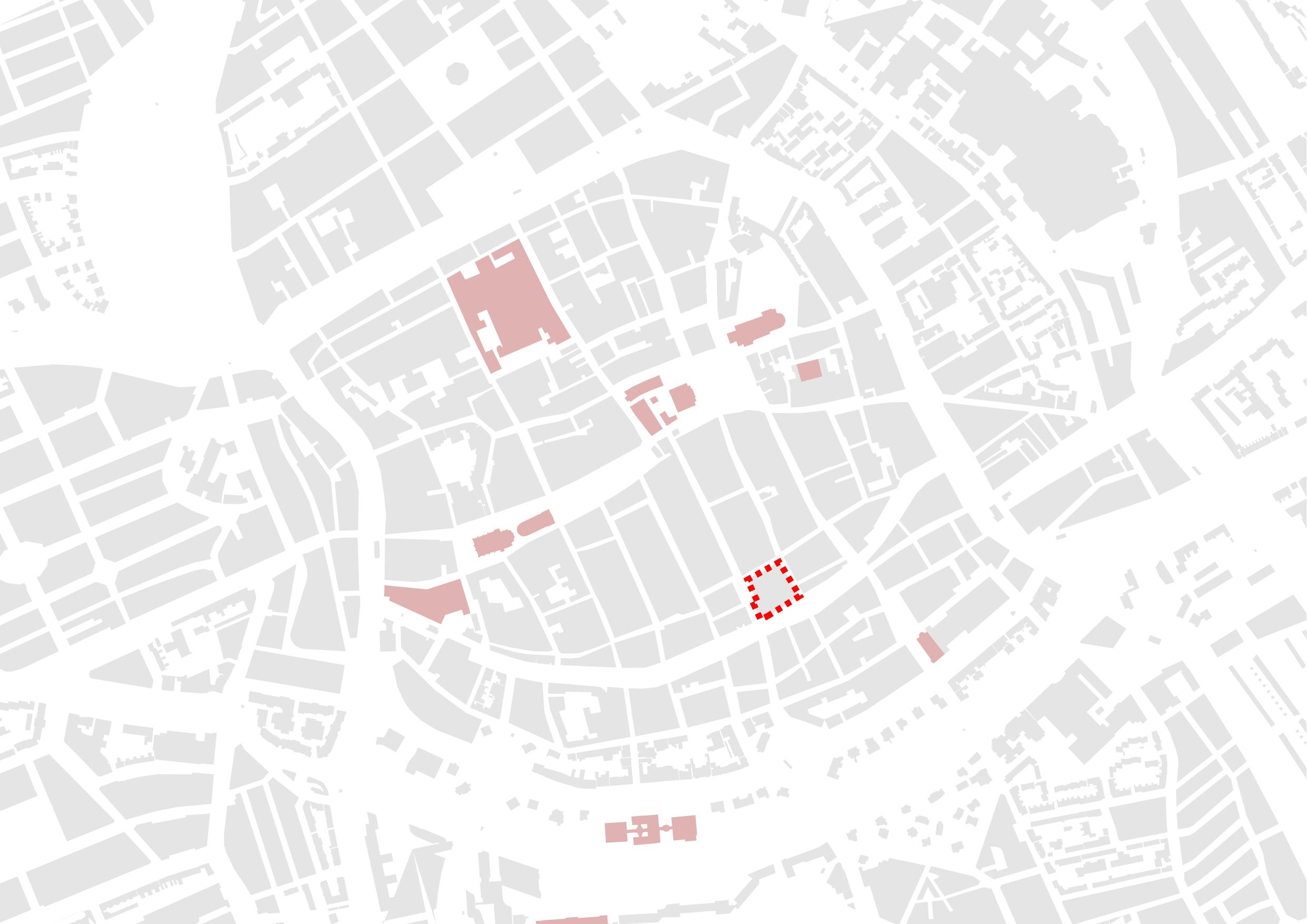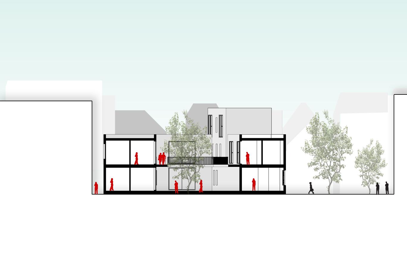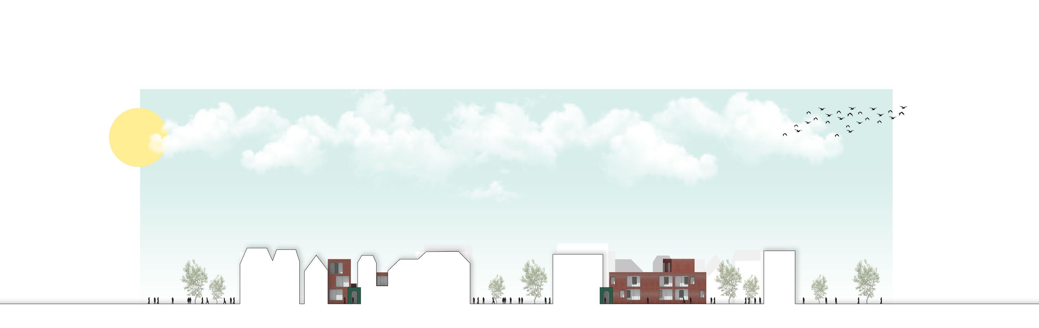 The dementia care home is structured as a gated community, and is separated from the C&A building and the tower by the reintroduction of the Burchtstraat to the block.