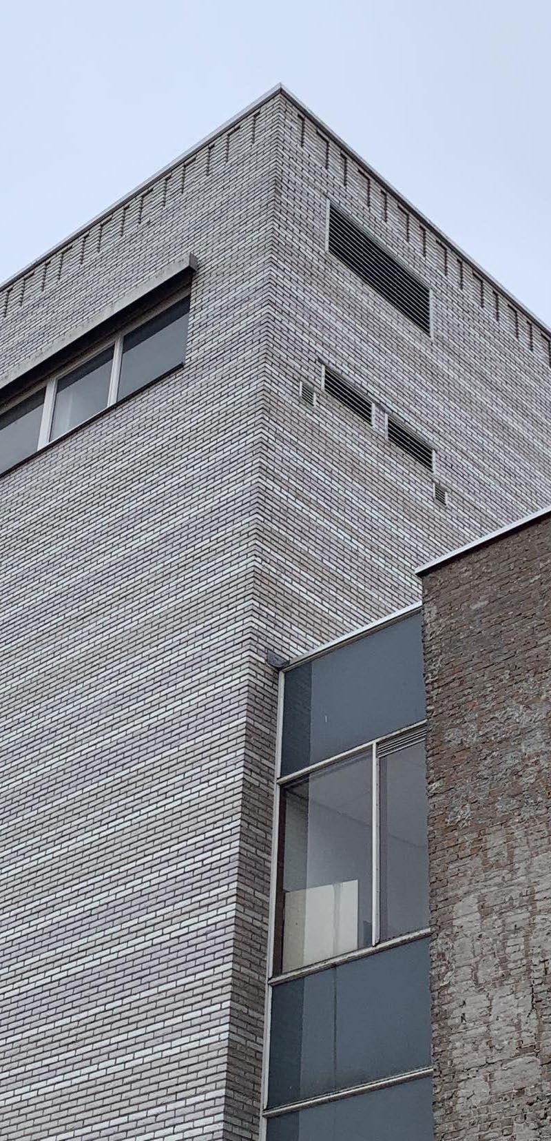 The facade of the tower uses bluish green ceramic panels - reminiscent of the window frames of Groningen’s historical homes. Each floor with a terrace and a communal living room has a different pattern - similar to the one seen at the current C&A building.