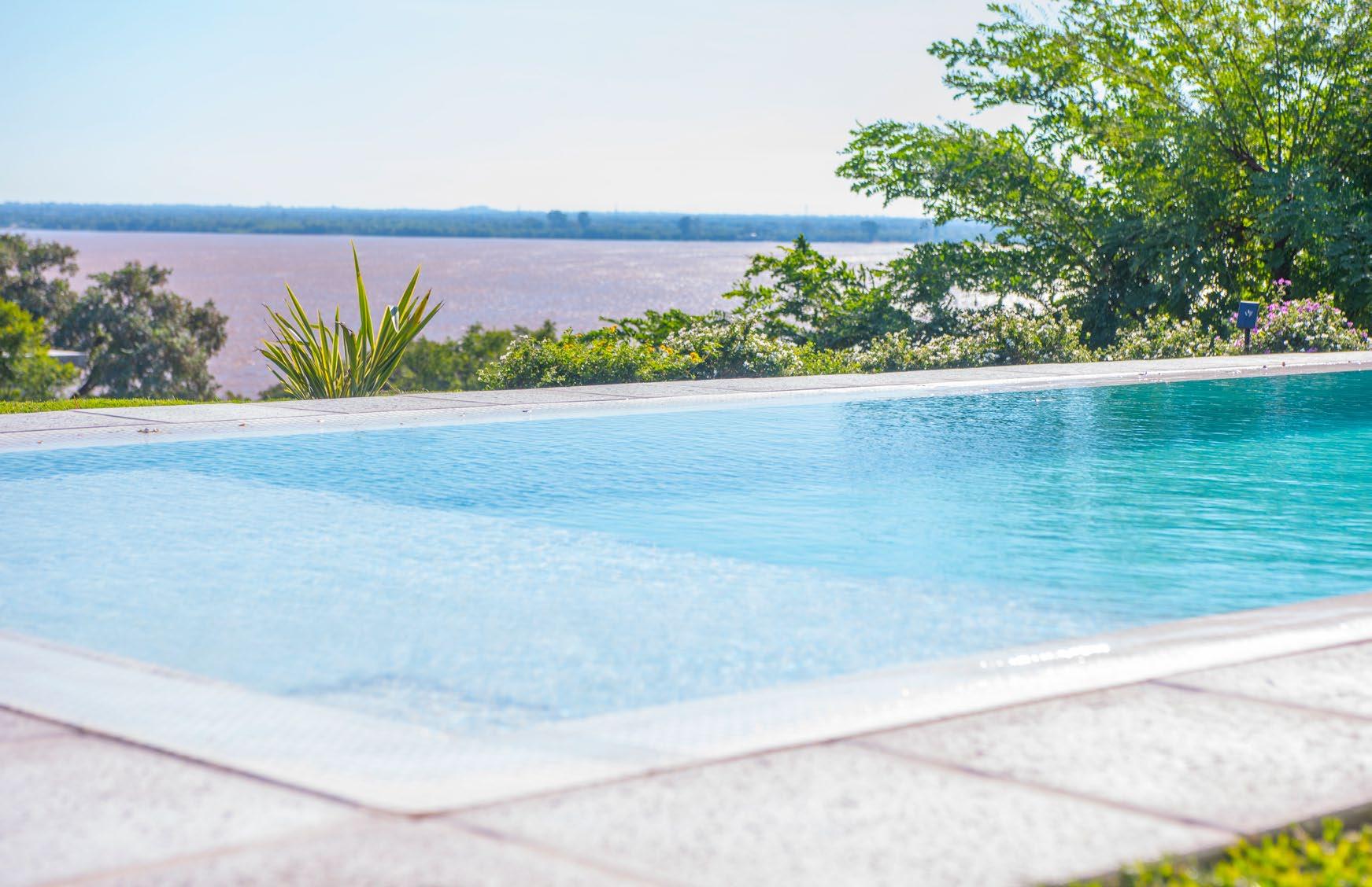 La piscina, con desbordes, se ubica en cercanías con el quincho, en el extremo de este lote en esquina, lo que le permite contar con la luz solar en todo momento del día y visuales hacia los atardeceres inolvidables.