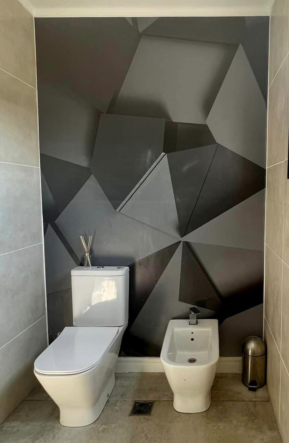 Empapelados, figuras en los porcelanatos, box con iluminación propia en estos baños con diferente paleta de colores, ubicados en una misma vivienda diseñada por la interiorista Gabriela Genolet.