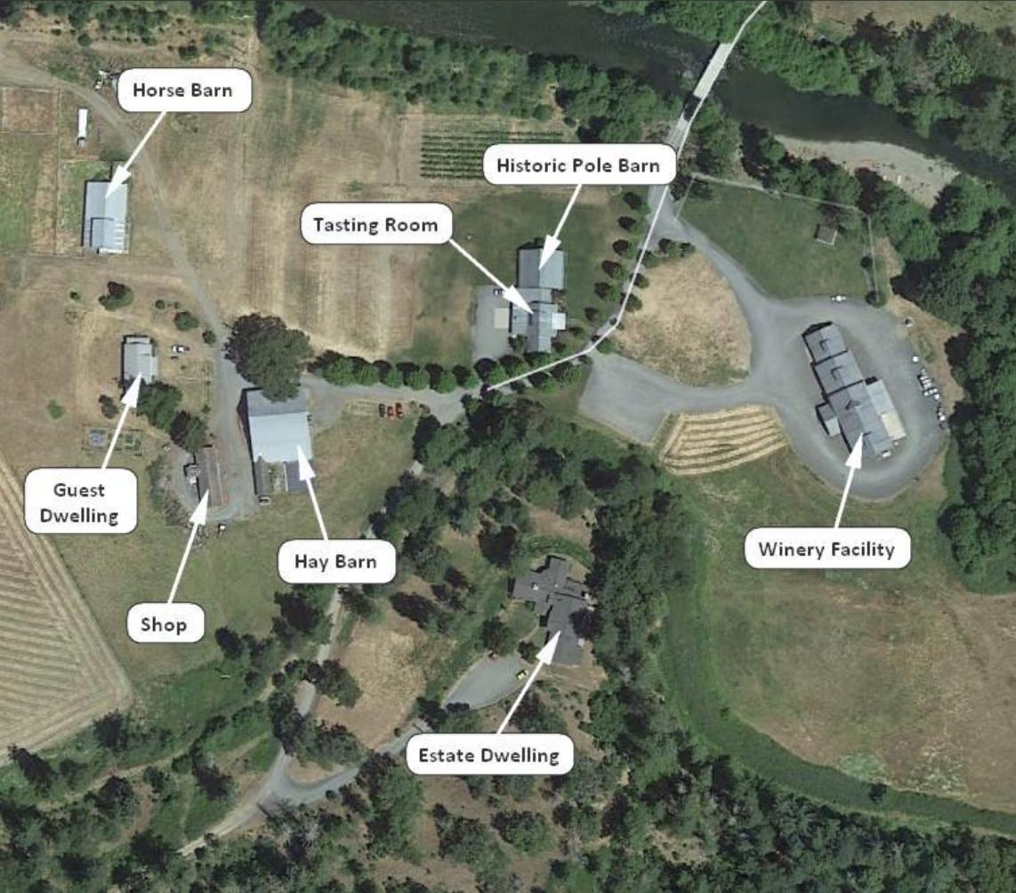 Present Land Use: Commercial winery and tasting room operation with supporting on-site vineyard, estate home, secondary dwelling, and numerous other agricultural support structures
