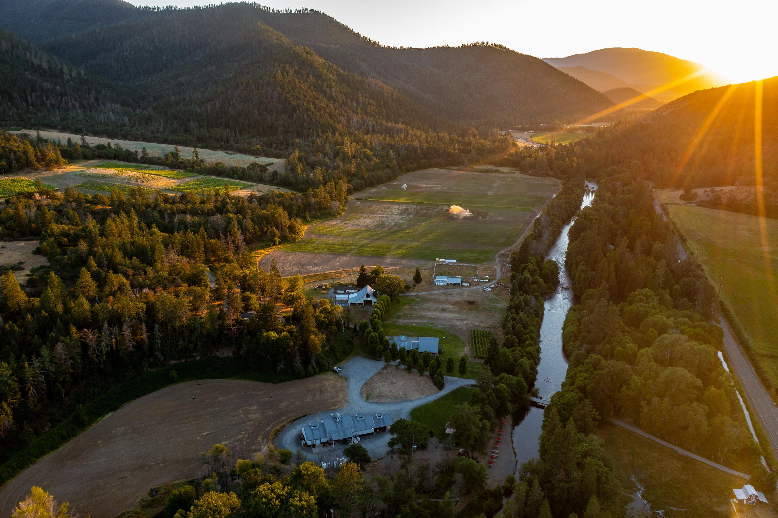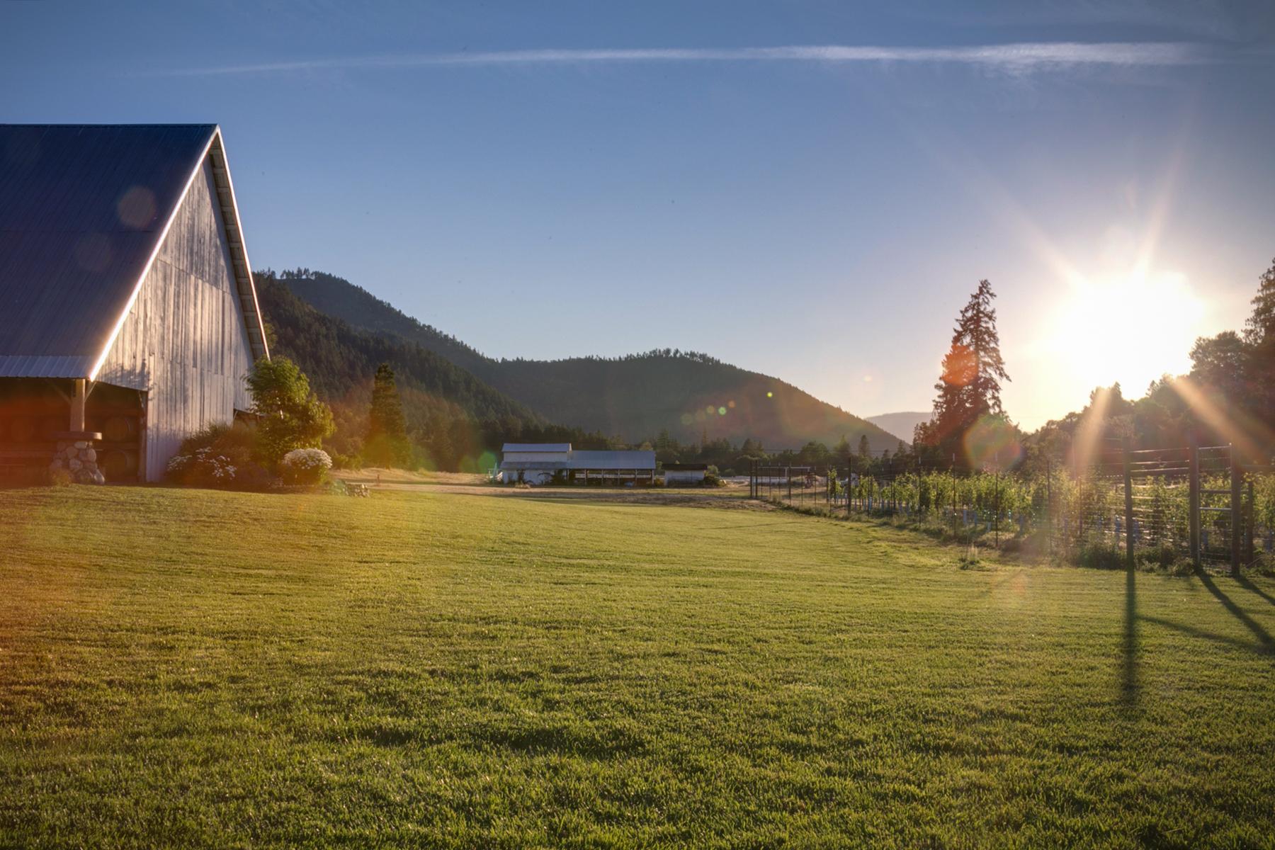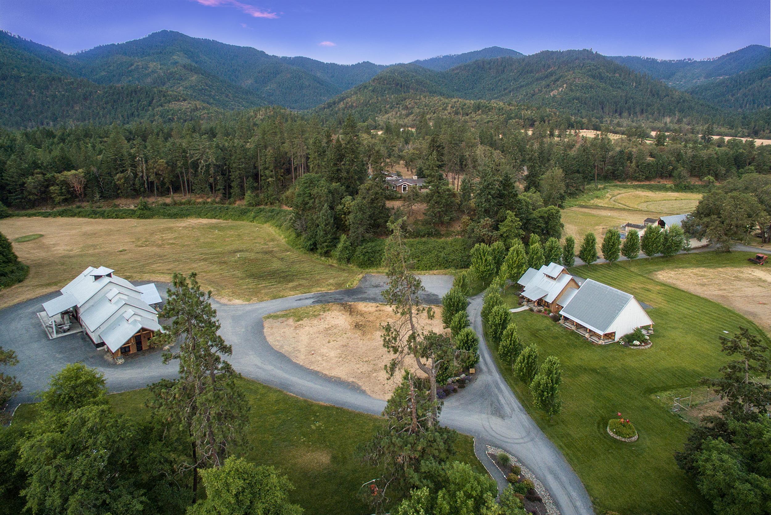 Asyouenter theproperty onaprivateroadthat isshadedby oak savannas,you passthroughacustomgateandroll over theApplegateRiver tothetasting room,andwinery.Thismagnificent property welcomesyouwithmanicured landscaping,alluringarchitecture,andagreat river ambiance.
