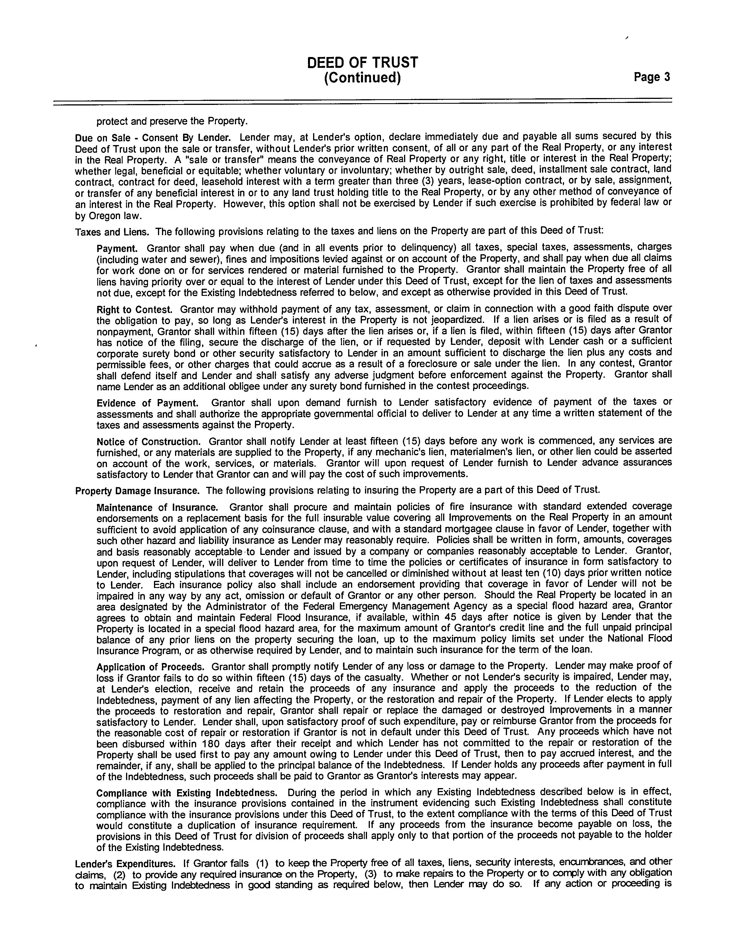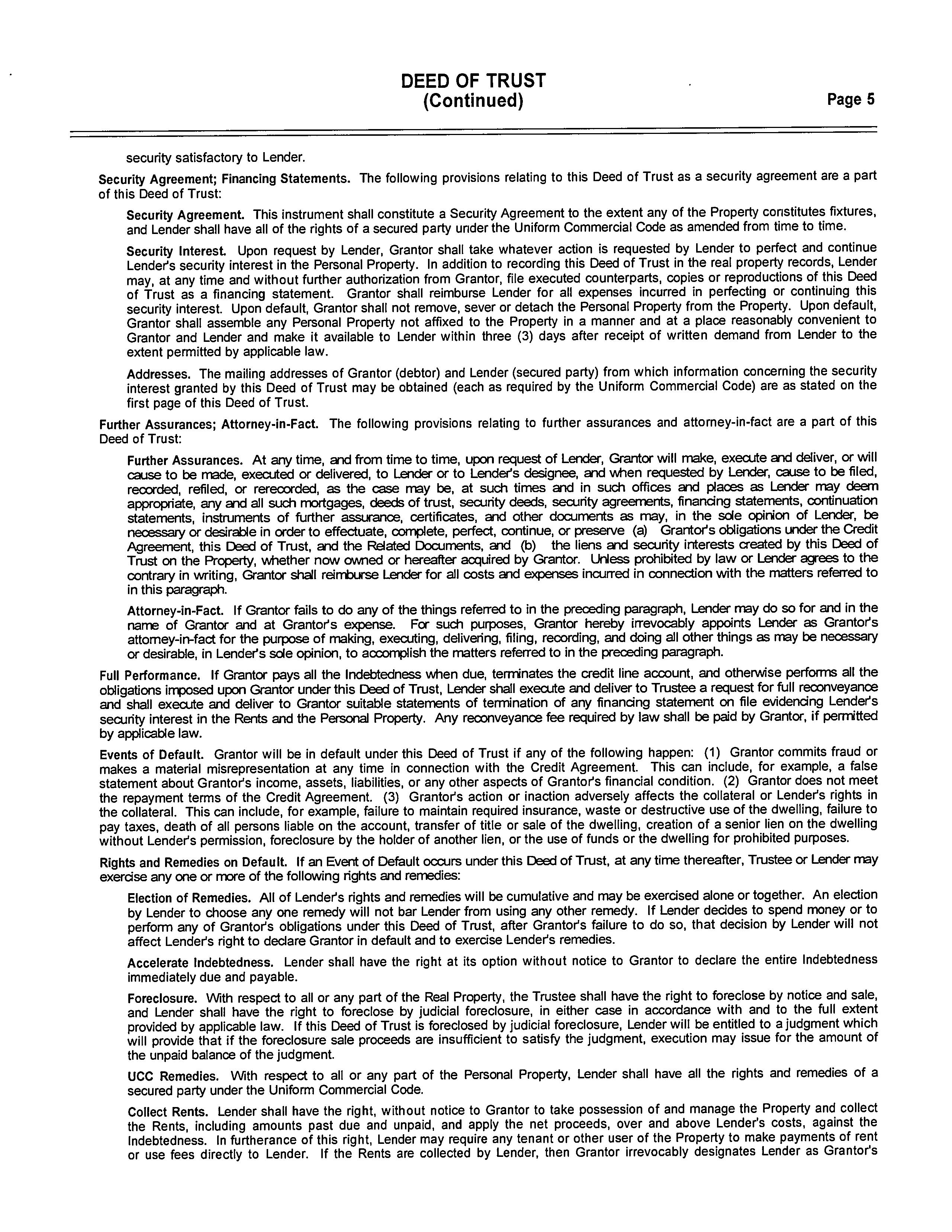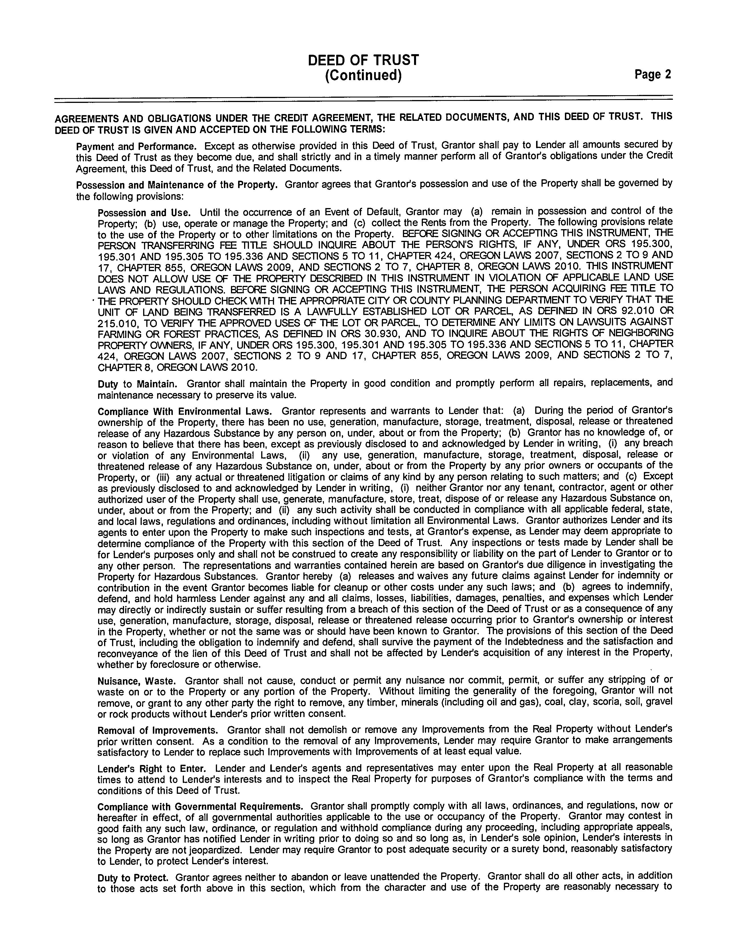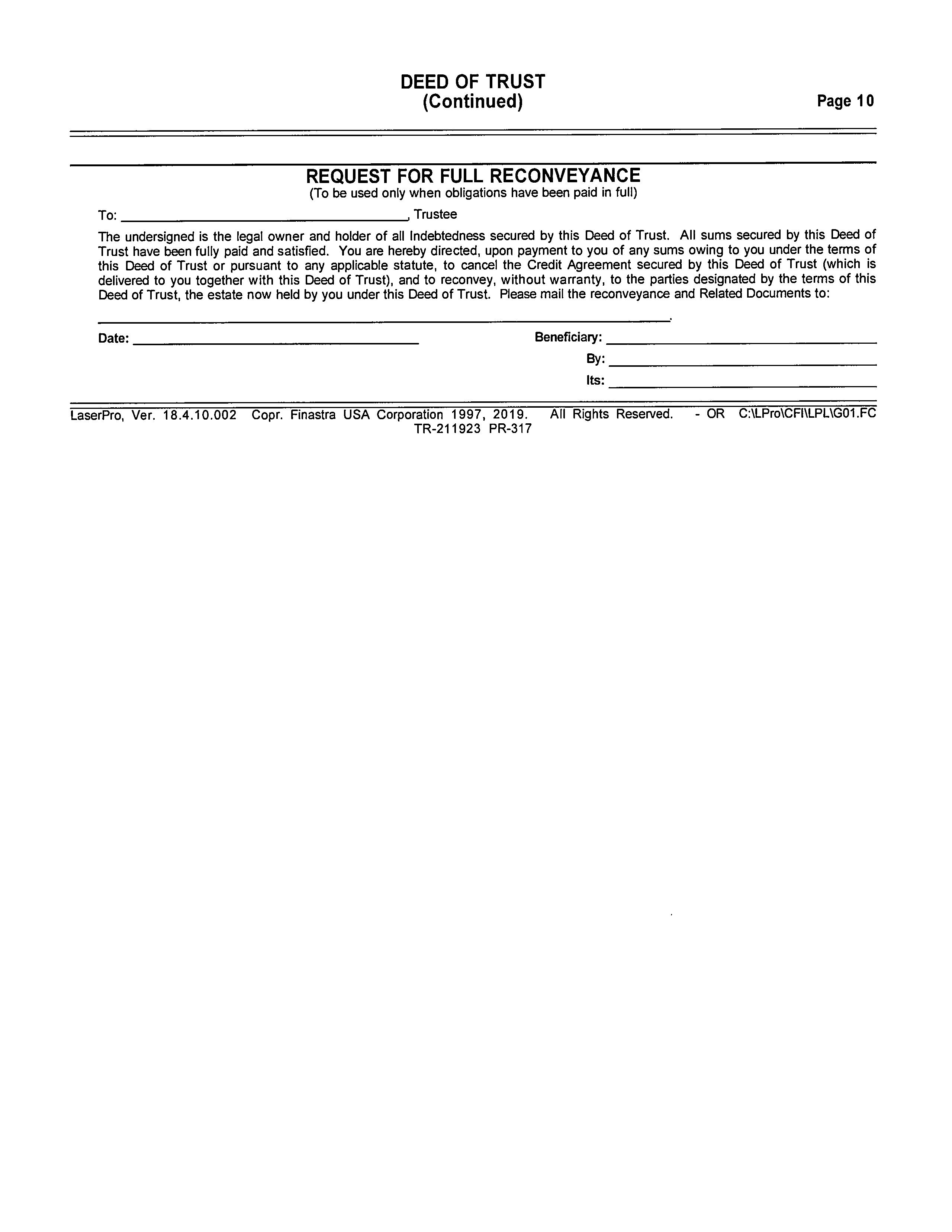 Note: This Deed of Trust contains Line of Credit privileges. If the current balance owing on said obligation is to be paid in full in the forthcoming transaction, confirmation should be made that the beneficiary will issue a proper request for full reconveyance.