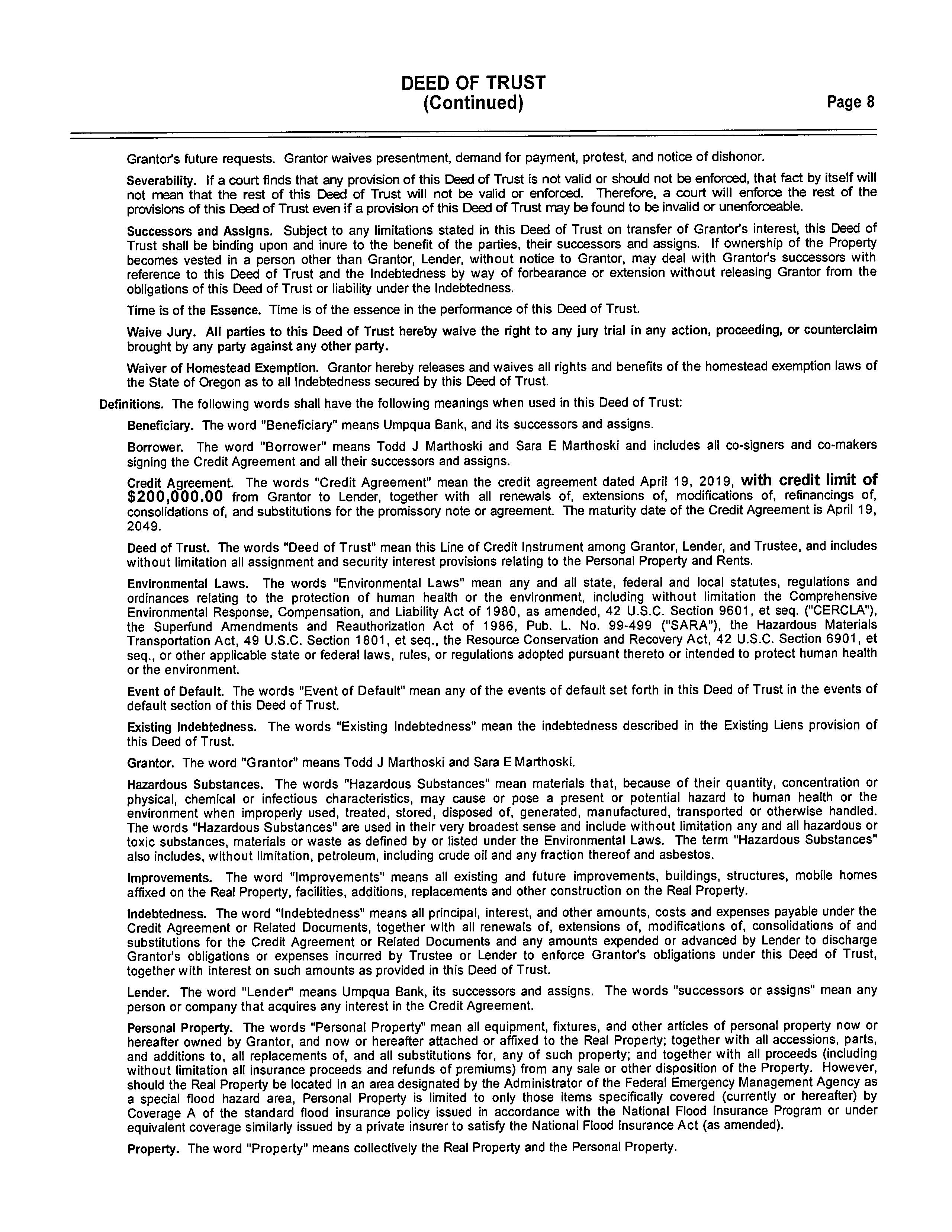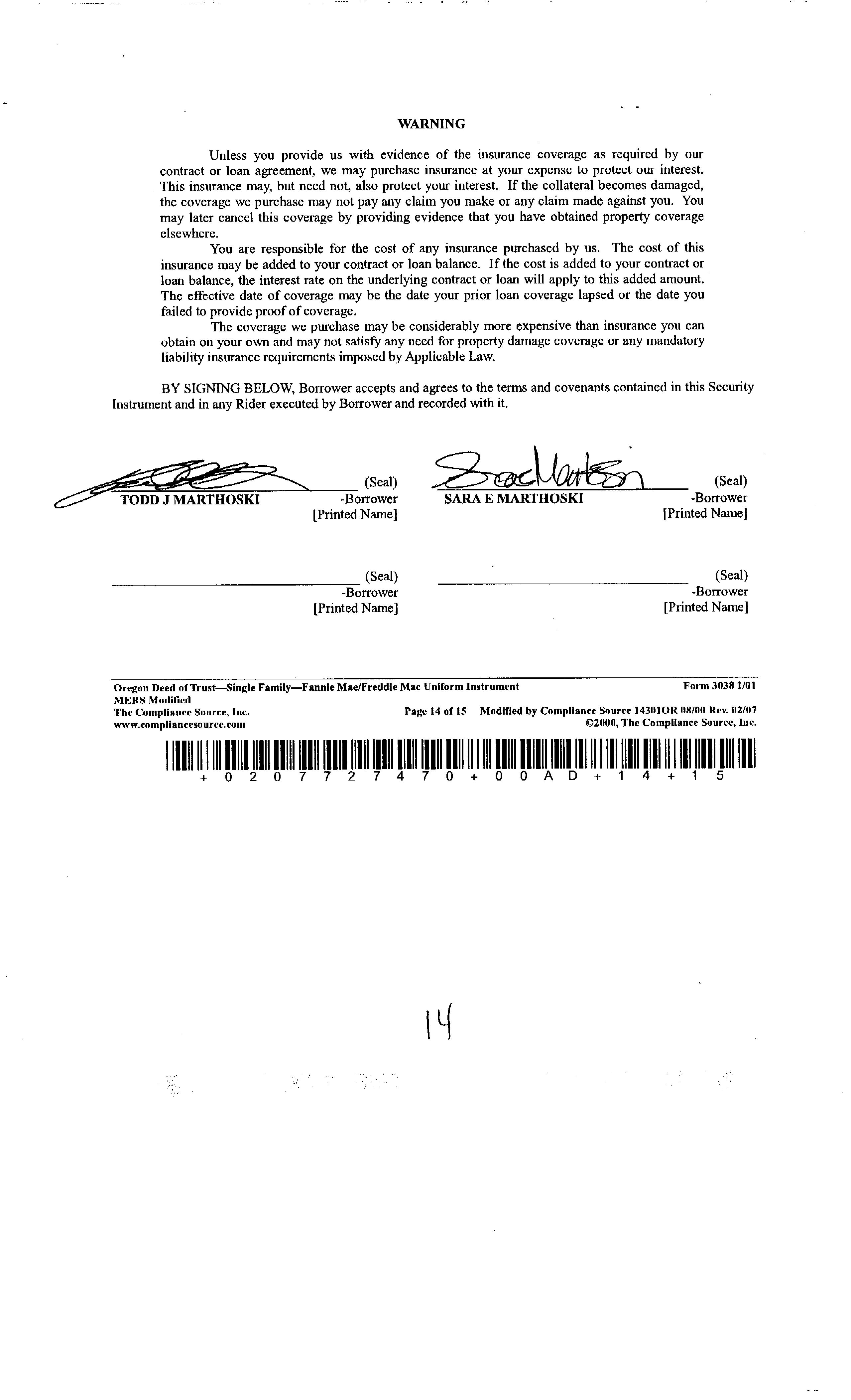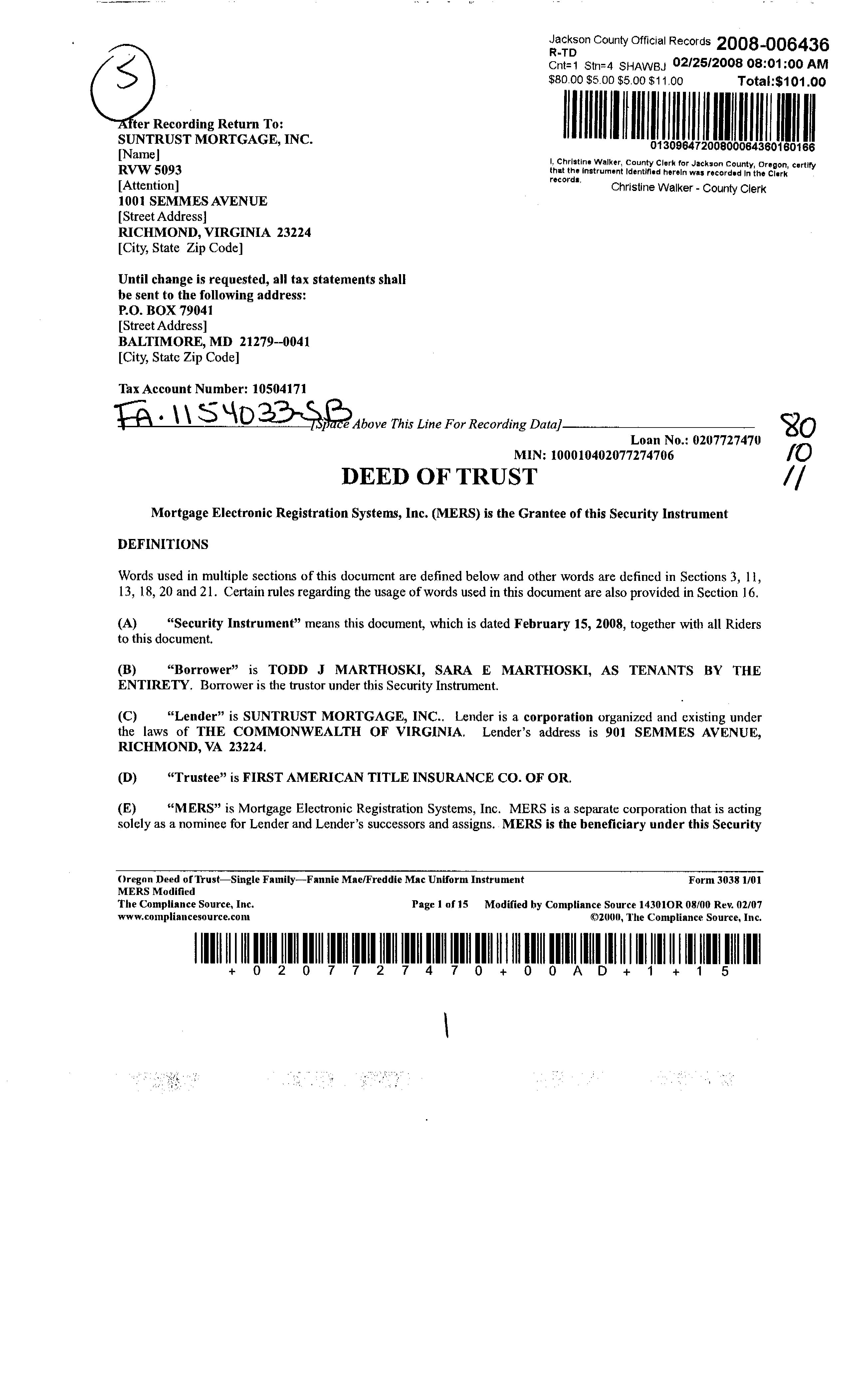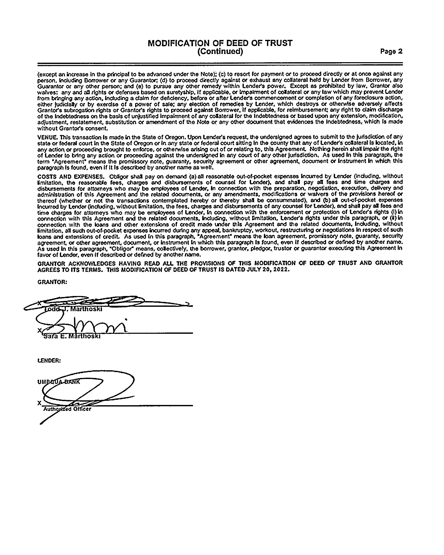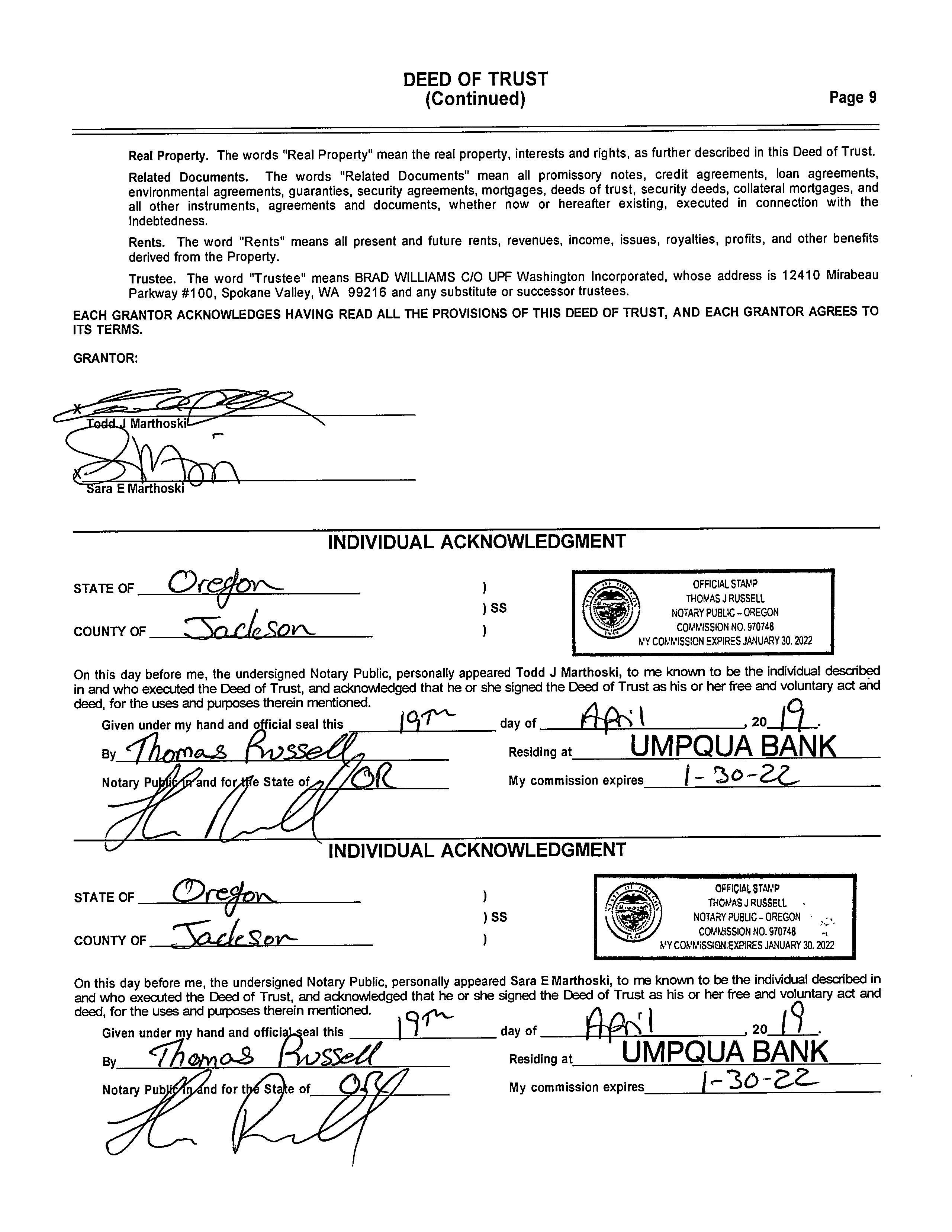 Grantor/Trustor: Todd J. Marthoski and Sara E. Marthoski