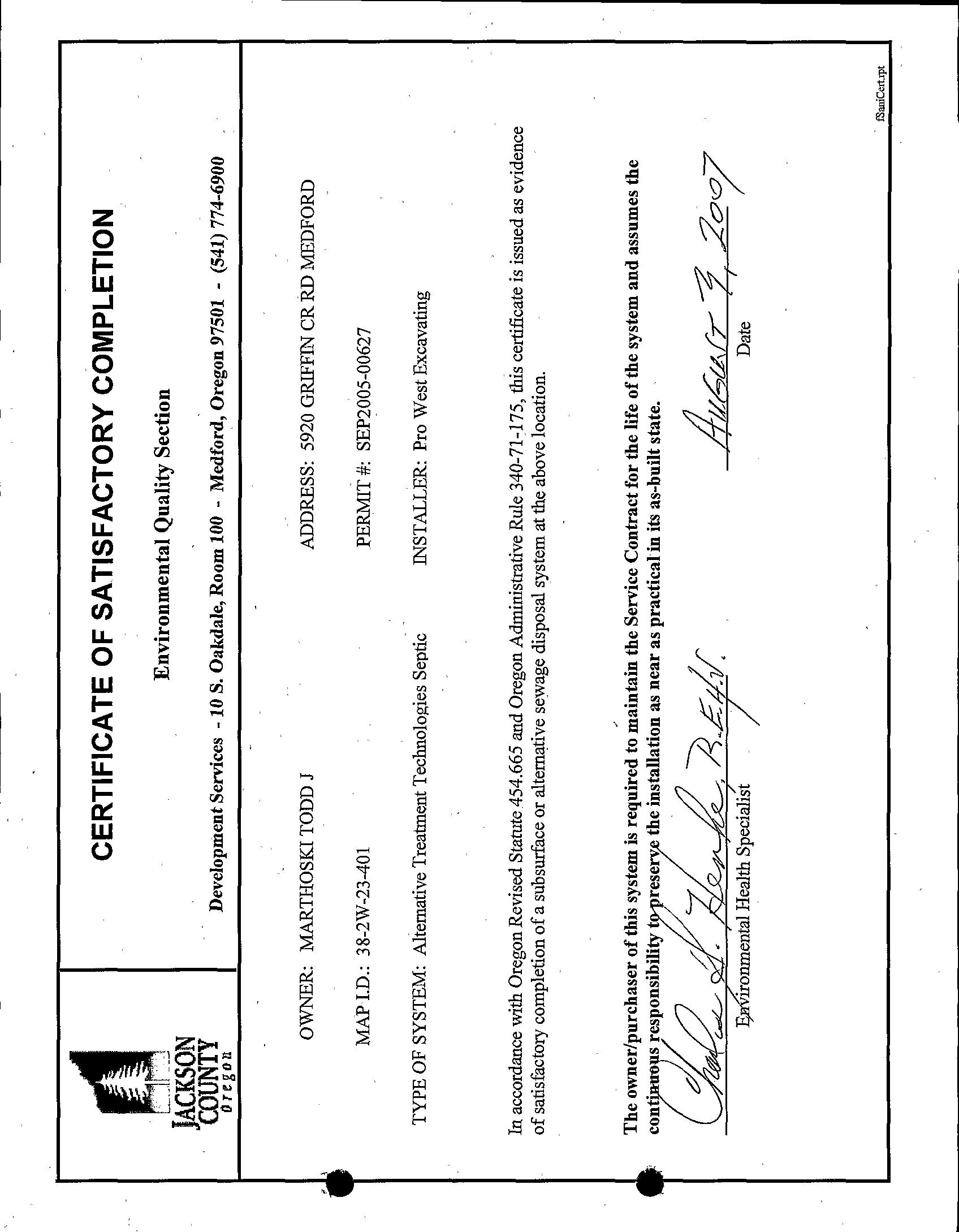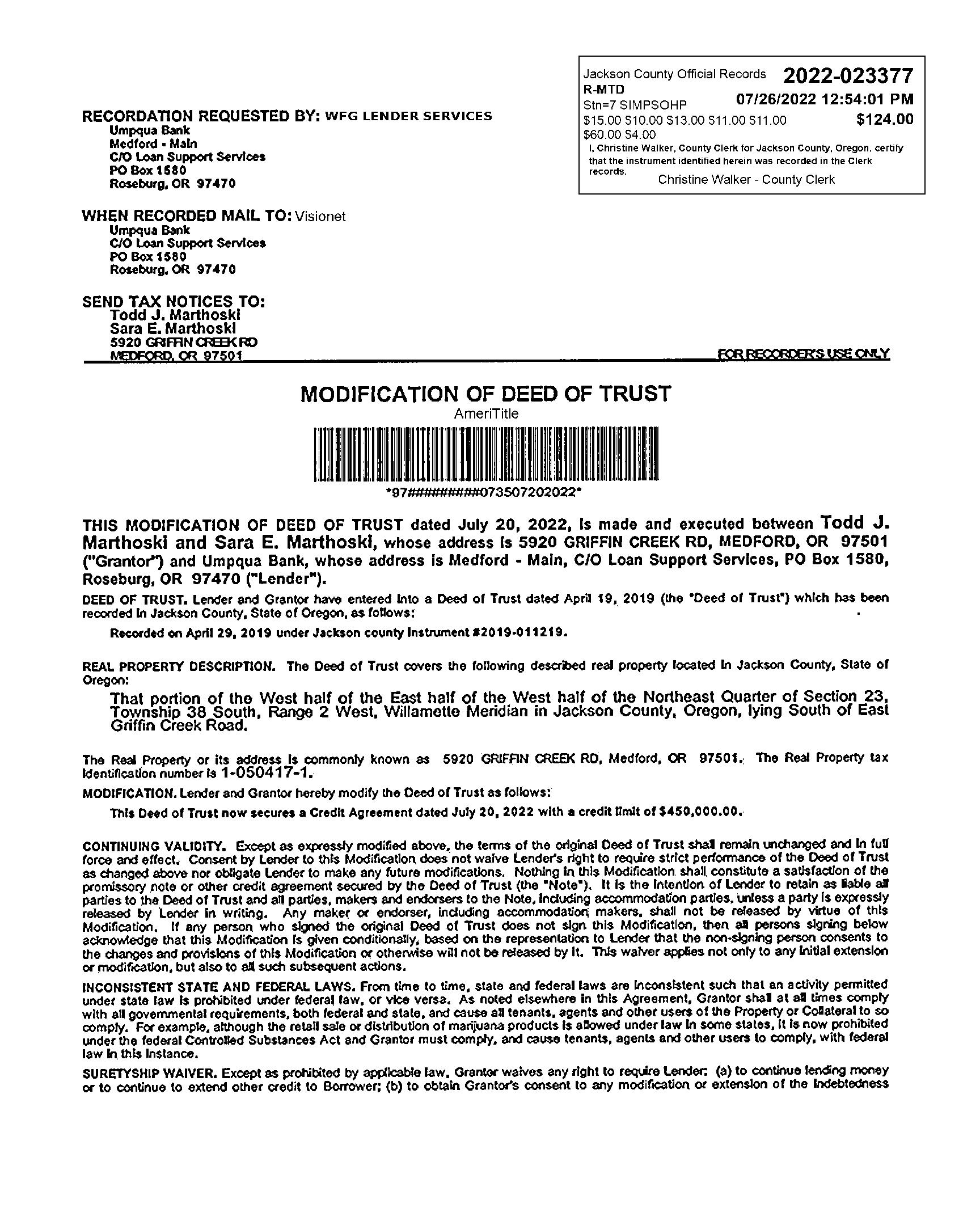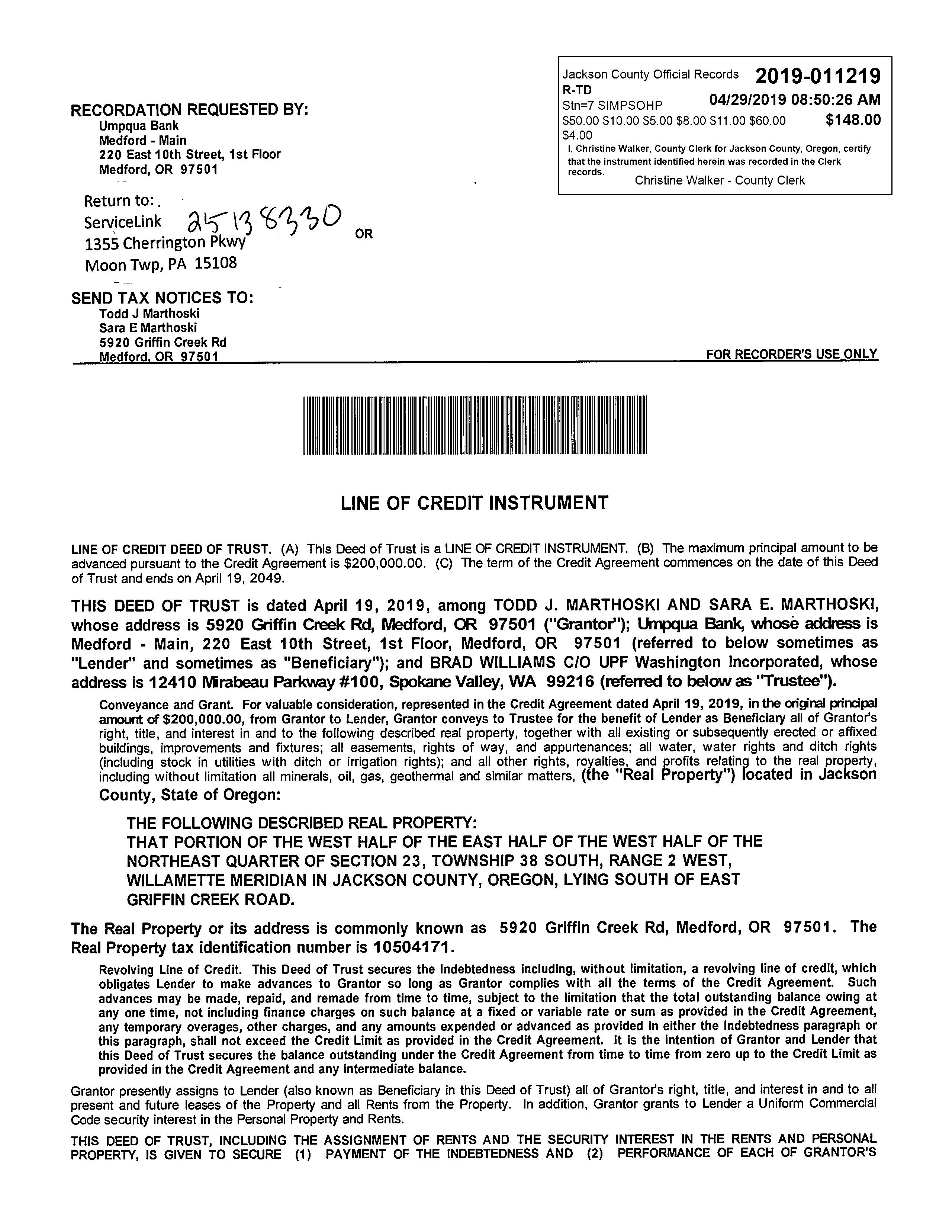 Situs 5920 GRIFFIN CR RD MEDFORD/COUNTY OR 97501 Mailing MARTHOSKI