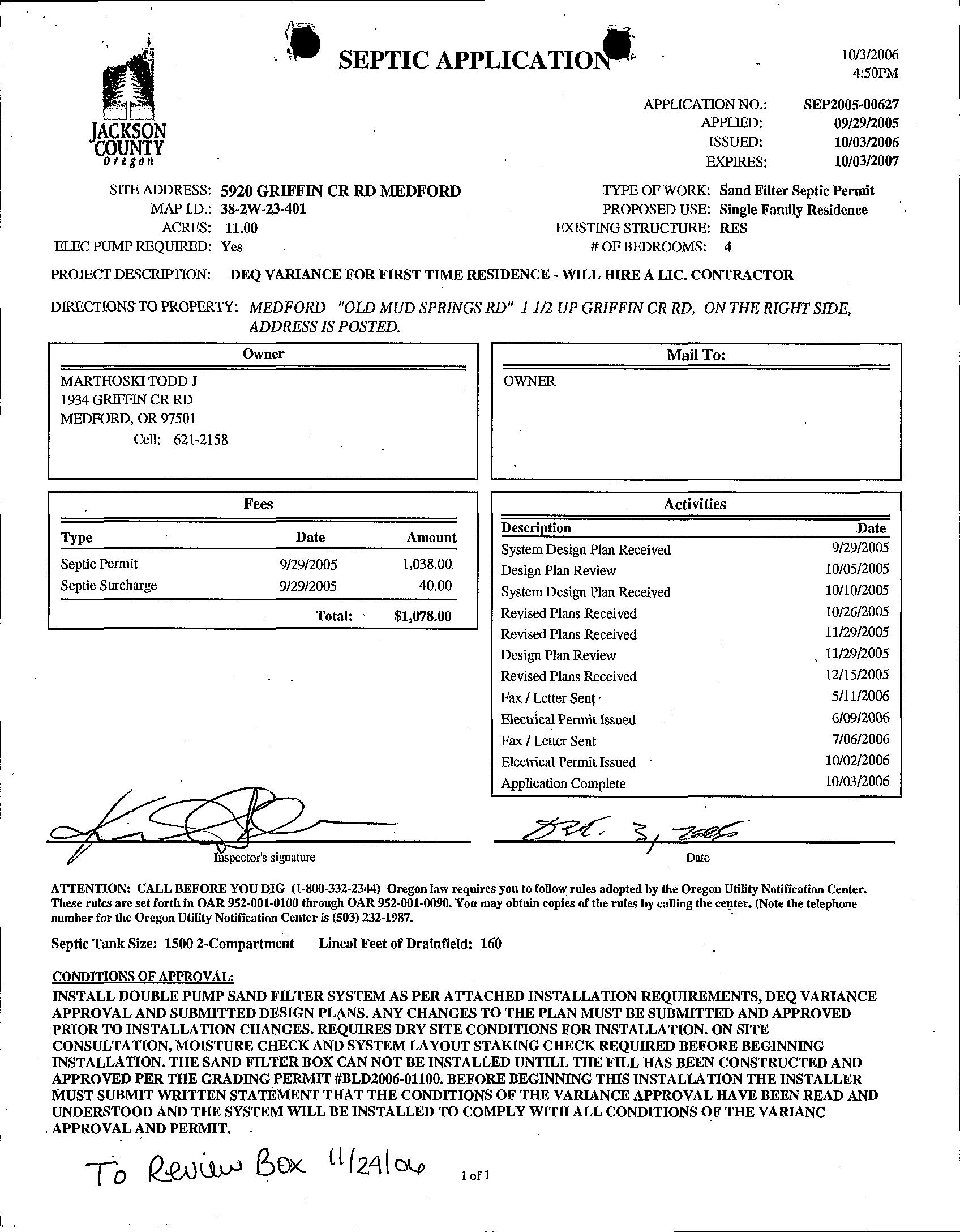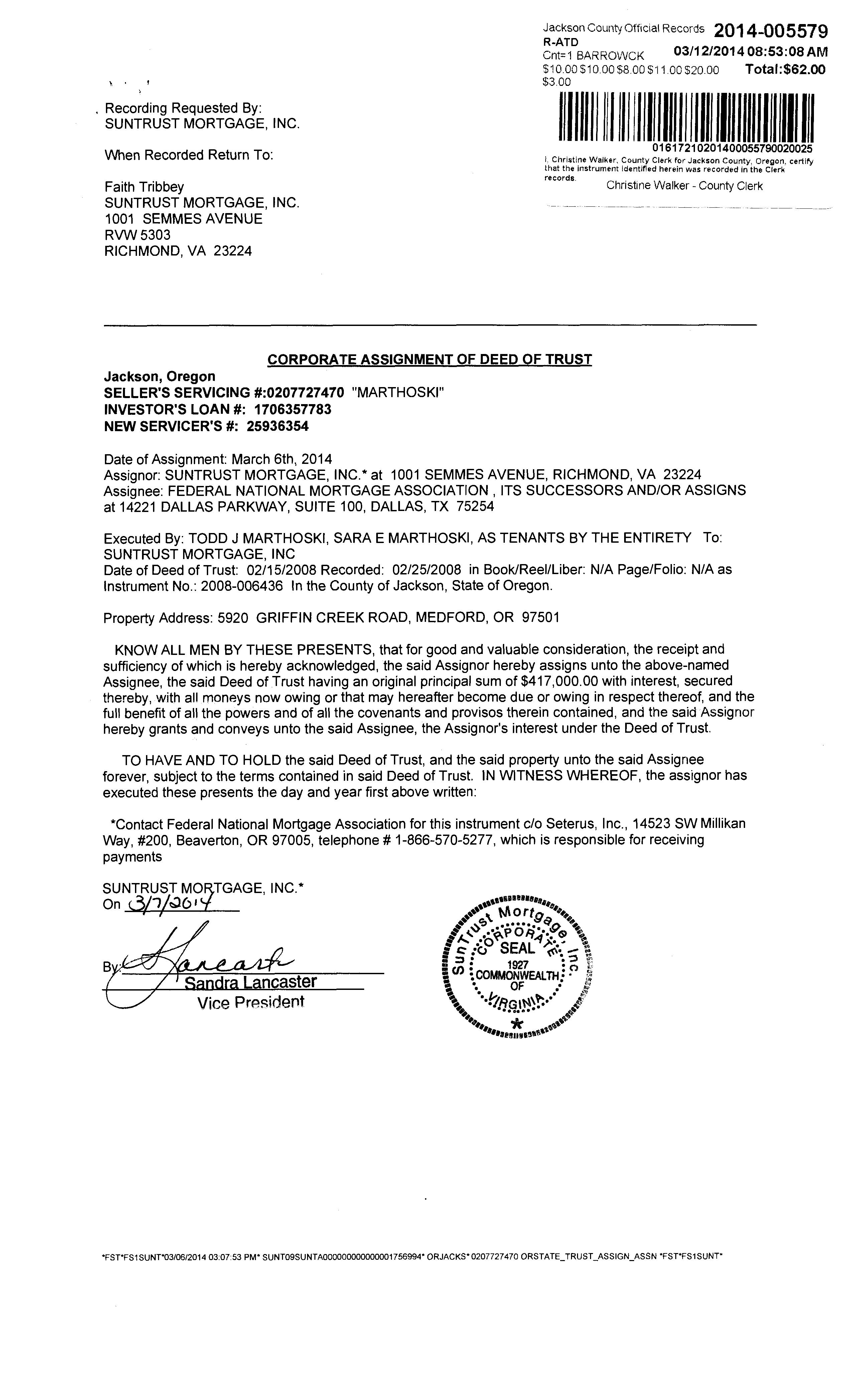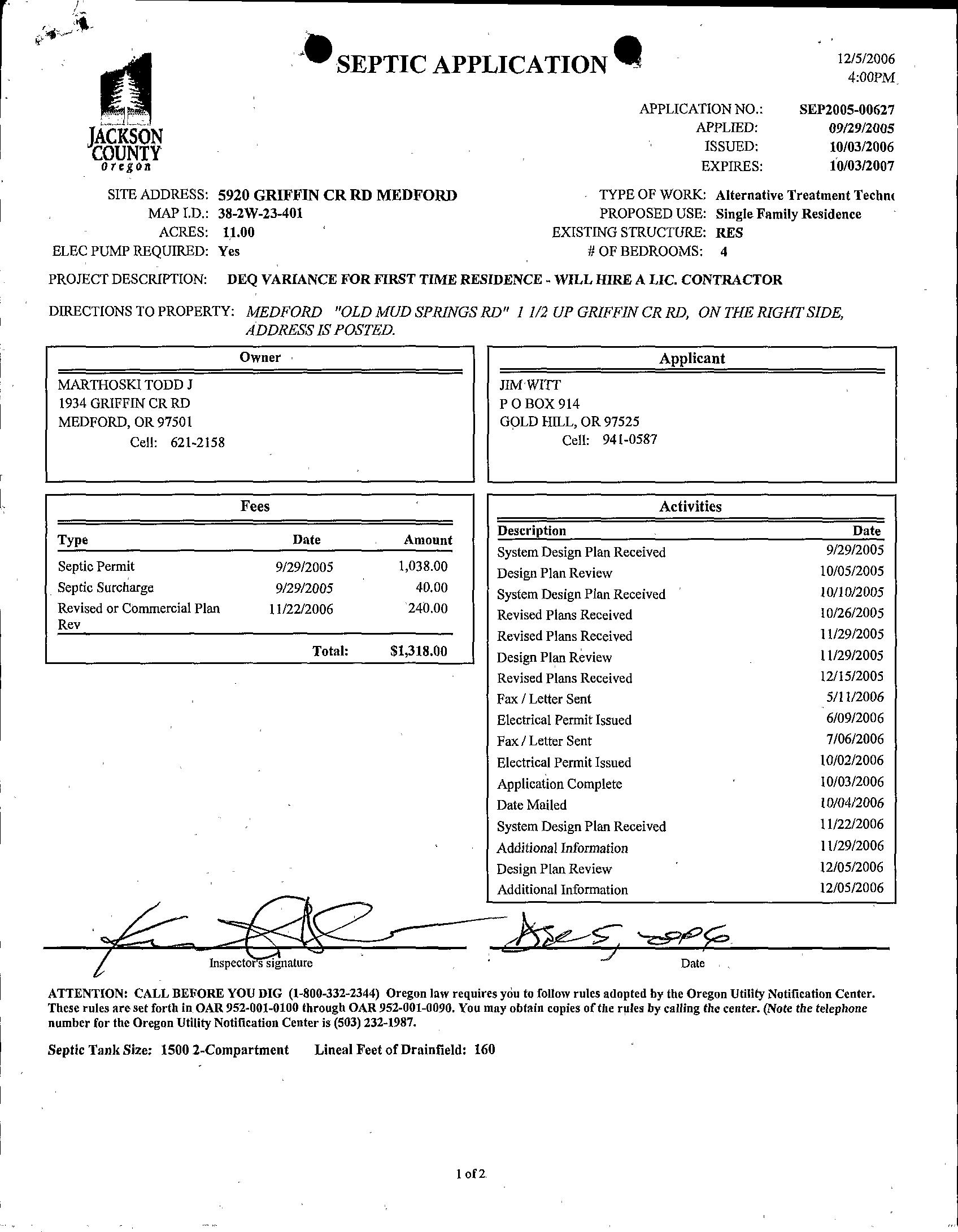 Situs 5920 GRIFFIN CR RD MEDFORD/COUNTY OR 97501 Mailing MARTHOSKI