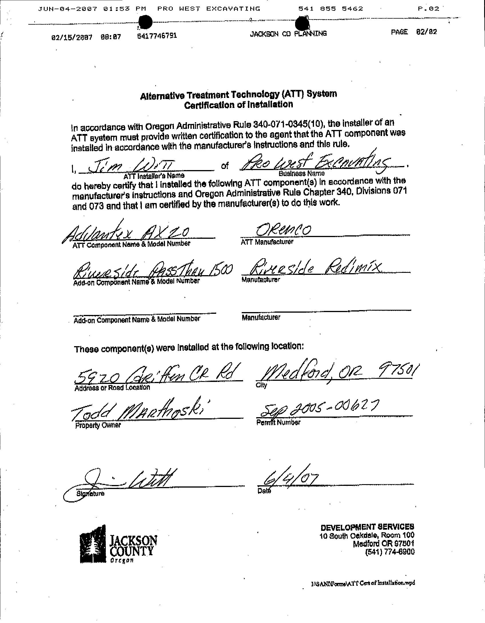 Description: Jackson,OR Document - Year.DocID [1/1/05 - Current] 2008.6435 Page: 2 of 2