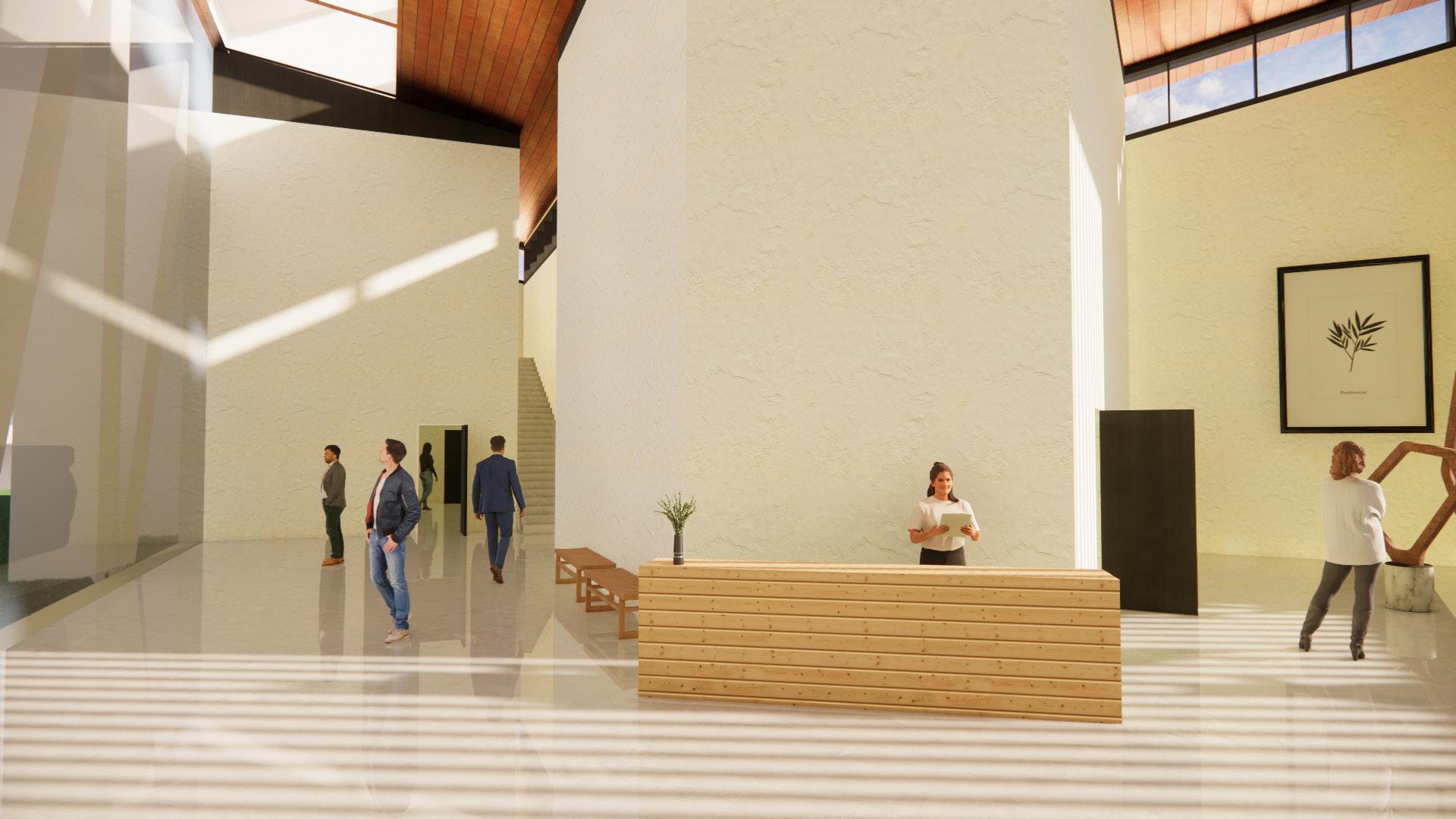 The building’s entrance leads you to the public area. To the right is the education wing (semi private) and the deeper in the building, the more private the spaces become.