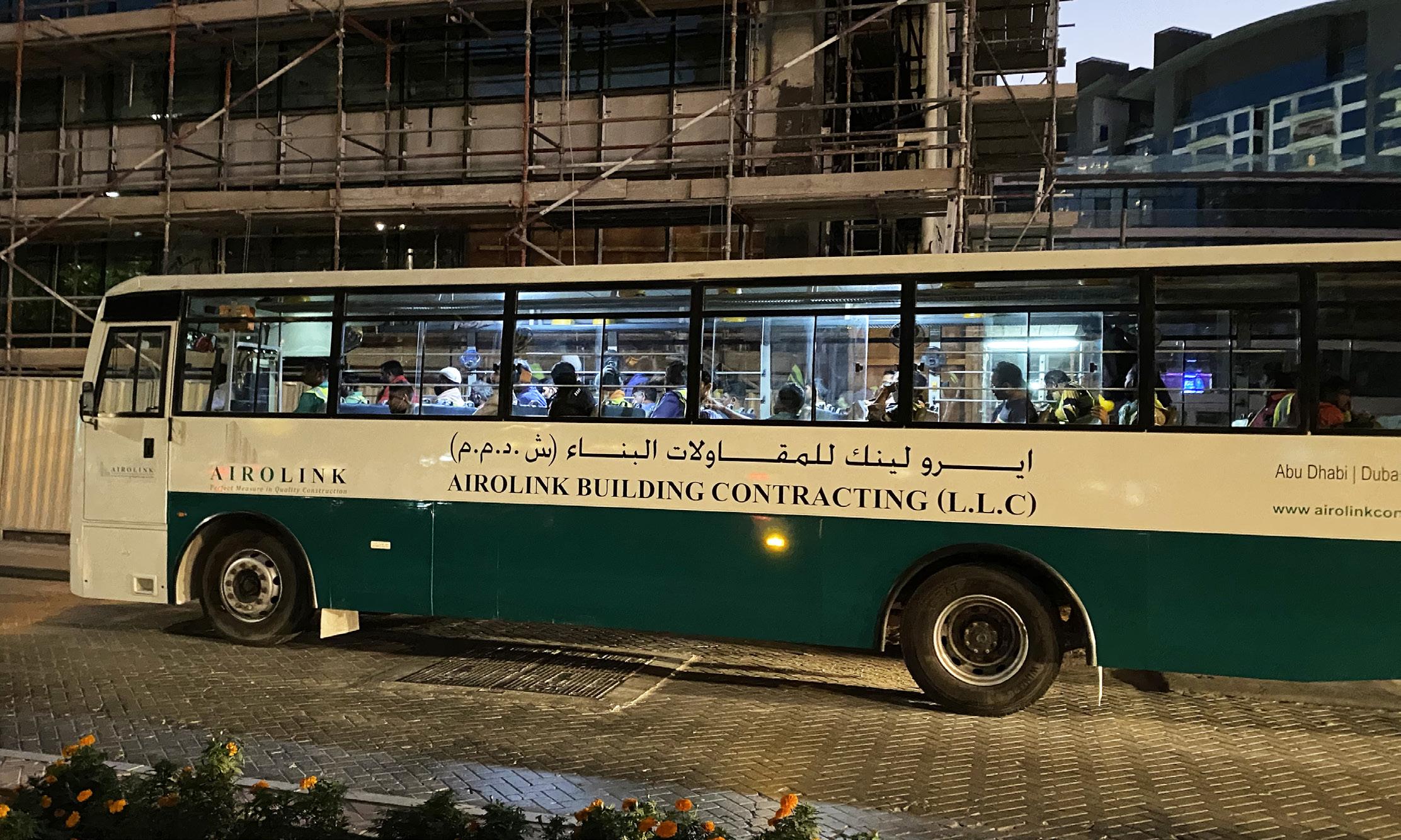 drive and stumbled upon the mode of transportation at the other end of Dubai’s spectrum: a bus for laborers. The workers at the construction site next door were getting aboard the Airolink bus at the end of their day, and no doubt they’d be returned to some crowded dormitory well inland from any luxury hotels along the beach. These men are most often not working for themselves, but for their families back home in Pakistan or Bangladesh. The nice condos at this construction site will start at only $175k because of the absurdly low cost of the sweat and bodily risk taken on by these workers. They live invisibly here and won’t be missed when they return home. Dukes hotel was on the Palm Jumeirah archipelago, a vast artificial extension of