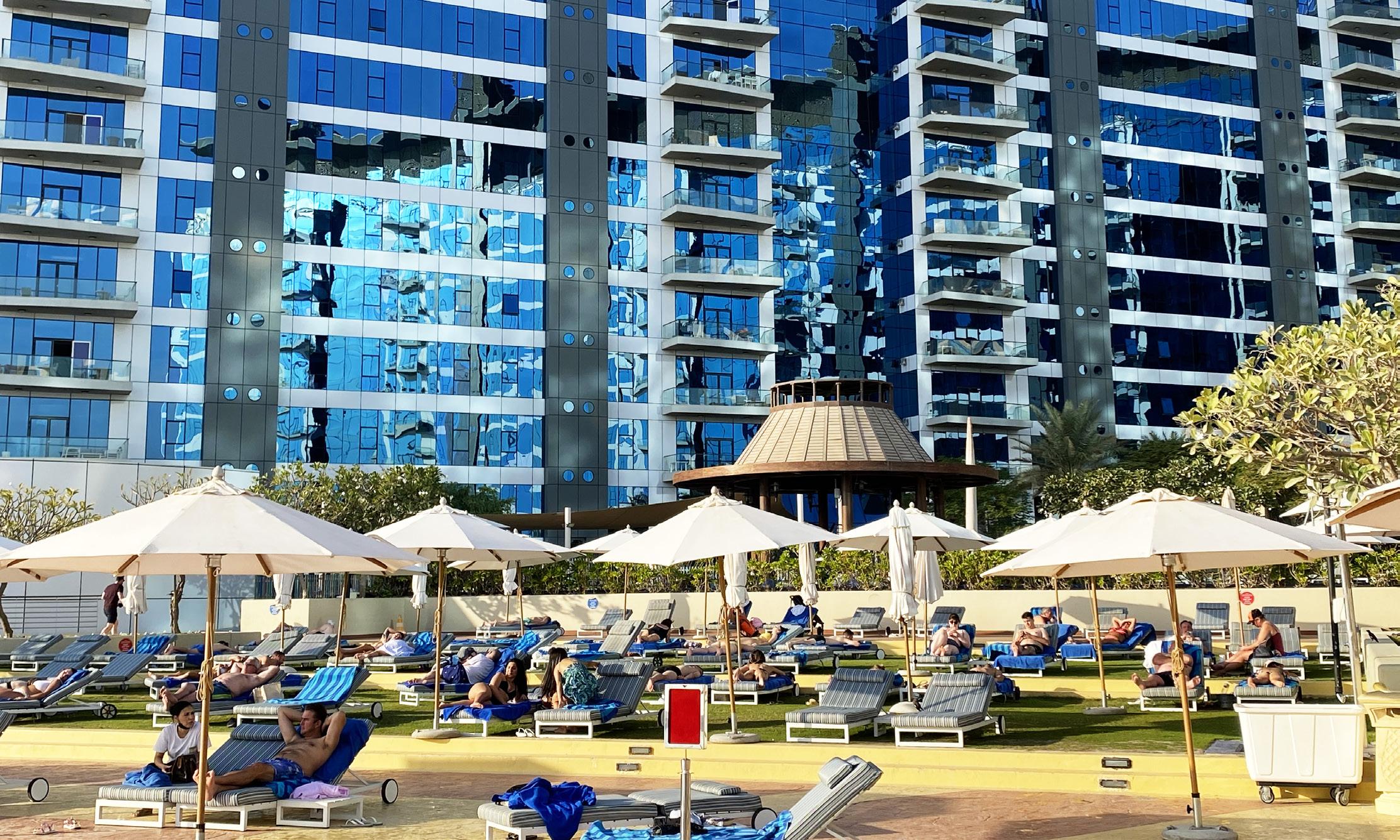 photos tagged #Dubai it was insightful to witness the actual production of these images. As I stood on the edge of the pool to get an iPhone photo of the skyline, I noticed this amateur photo session in progress, whose end result could probably be entitled “cheeks with brilliant cityscape.” On Instagram these photos take on an impossible veneer, but the process is ridiculous. What’s erased isn’t just the onlookers, but the sheer boredom of the process. These two had lounged silently in chairs through the afternoon, until the golden hour approached, when they suddenly felt the call of the water. The guy worked to position his girlfriend’s body with an envy-generating cityscape as the perfect background. As I’ve mentioned, cameras weren’t allowed in