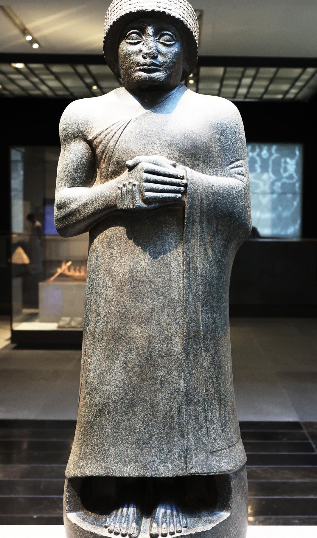 universal story, the objects in the Louvre Abu Dhabi were working to tell a more specific one too, pushing visitors to view the UAE (and its broader region) in a new light. For example, this statue of Gudea, Prince of Lagash around 2100 BC comes from southern Iraq (easily reached by continuing on to the end of the Arabian Gulf, then pushing further on the Tigris or Euphrates