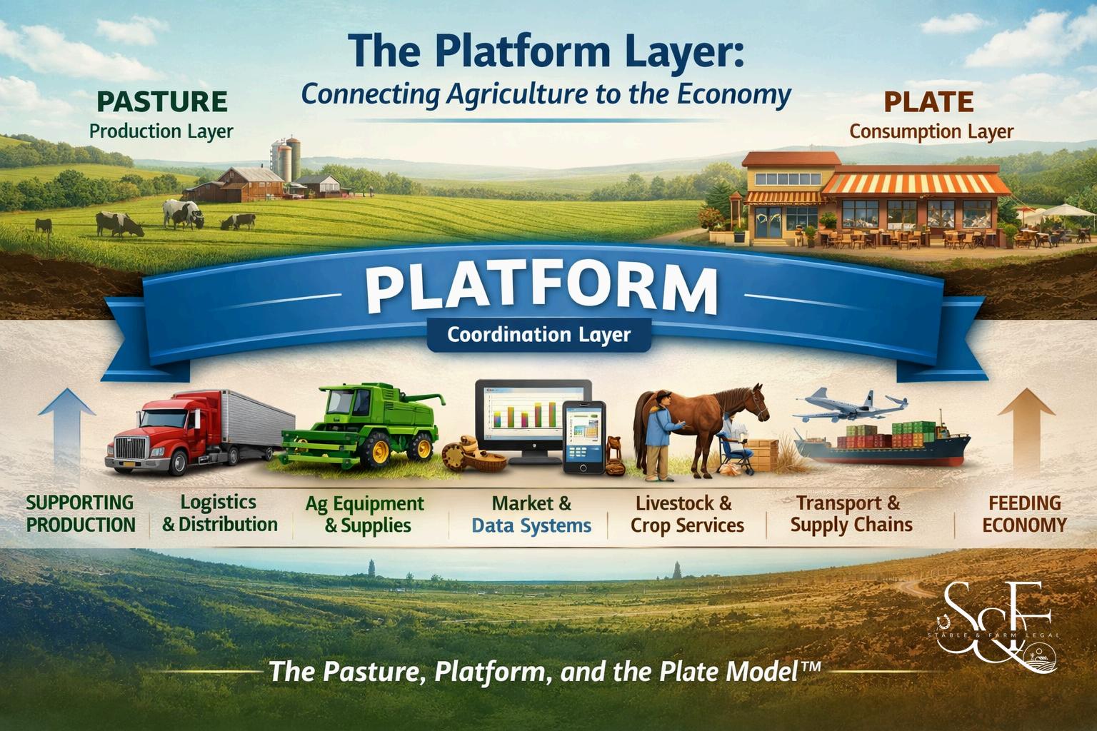 Ultimately, within The Pasture, Platform, and the Plate Model™, the platform layer is the system that enables agriculture to function at scale. It does more than move goods; it supports production, coordinates services, and connects agriculture to the broader economy It is the mechanism that moves products from pasture to plate. But it is not independent. It is built entirely on the foundation of agricultural production When agriculture is strong, the platform thrives When agriculture is disrupted, the entire system is affected This is why agriculture must be understood not as a standalone sector, but as the infrastructure that supports and sustains economic activity