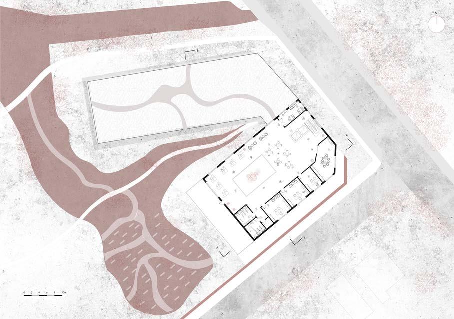 By taking into account the unique characteristics of the location, using existing materials, and involving the community in the design, structures being created will be truly responsive to the existing context. The focal point of the project is the awareness garden which centres around the concept of materiality, where the community engages in building structures that tells their stories. To incorporate sustainability within the proposal, the canal bordering the site will be connected to the garden to bring about biodiversity. Site Plan Strategy