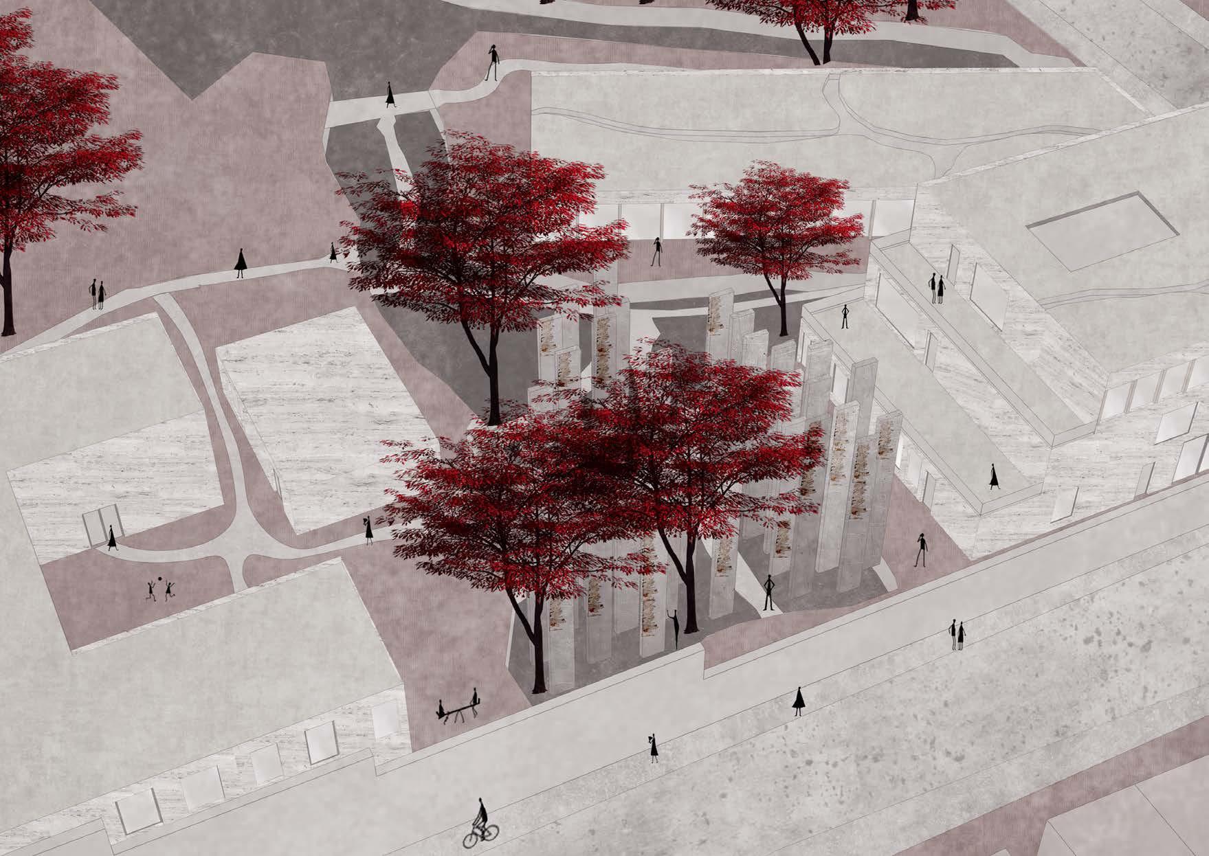The concept of “Location, Materiality and Participation” was inspired by an article about the Memorial for the Victims of violence in Lain America. The articles mainly spoke about a place for commemoration and how to create awareness by including the people in the design process and early stages of a project. It also talks about creating a sense of place and identity through meaningful practices such as creating a “Memorial Garden”. This will engage the community and how they respond to certain activities which will reflect on certain design decisions. Memorial designs tend to bring about strong identities, culture and materiality of a place, this idea was then reflected on “The Resilience” as a way to make the idea of Freetown Ladywood being an independent and self-governed community.