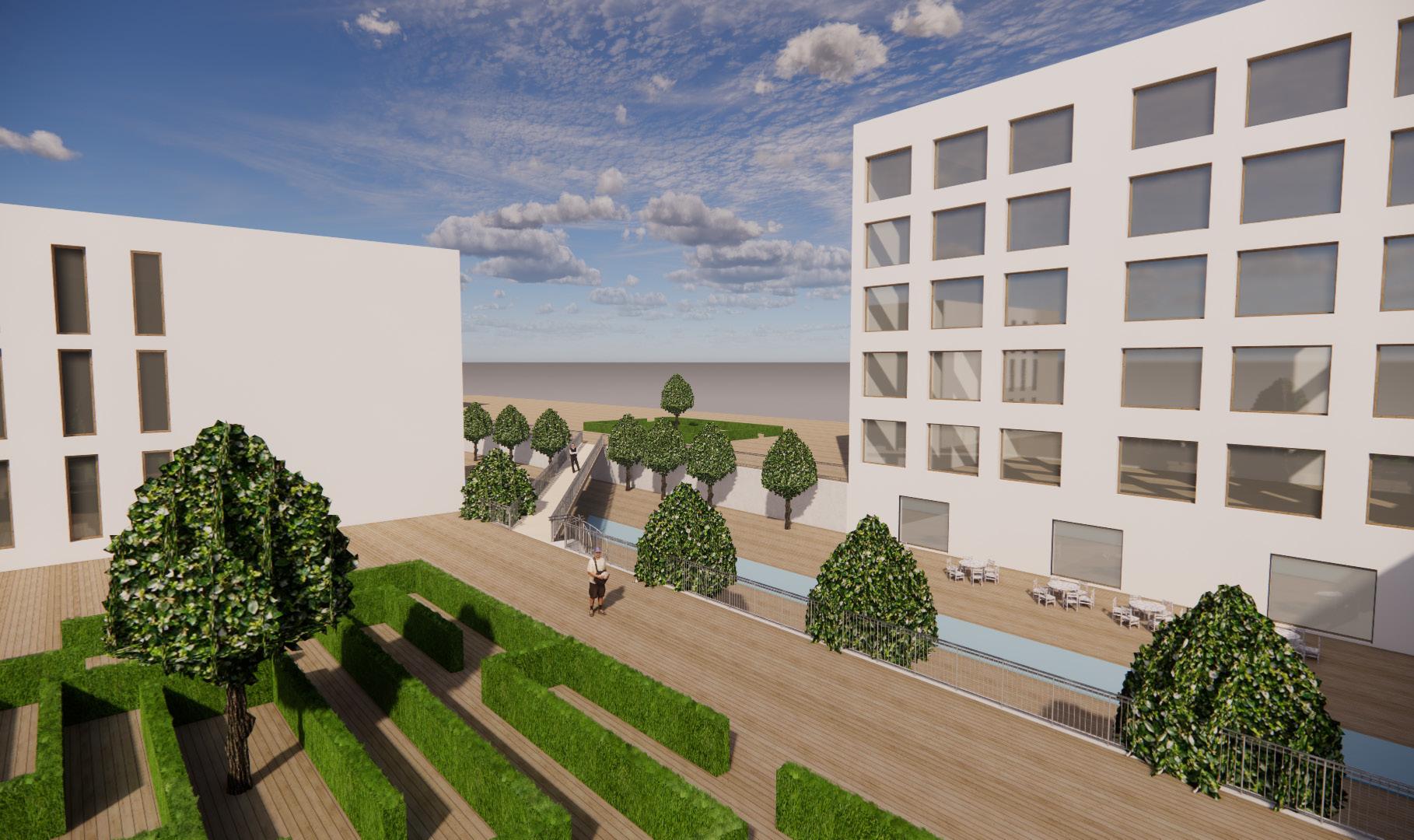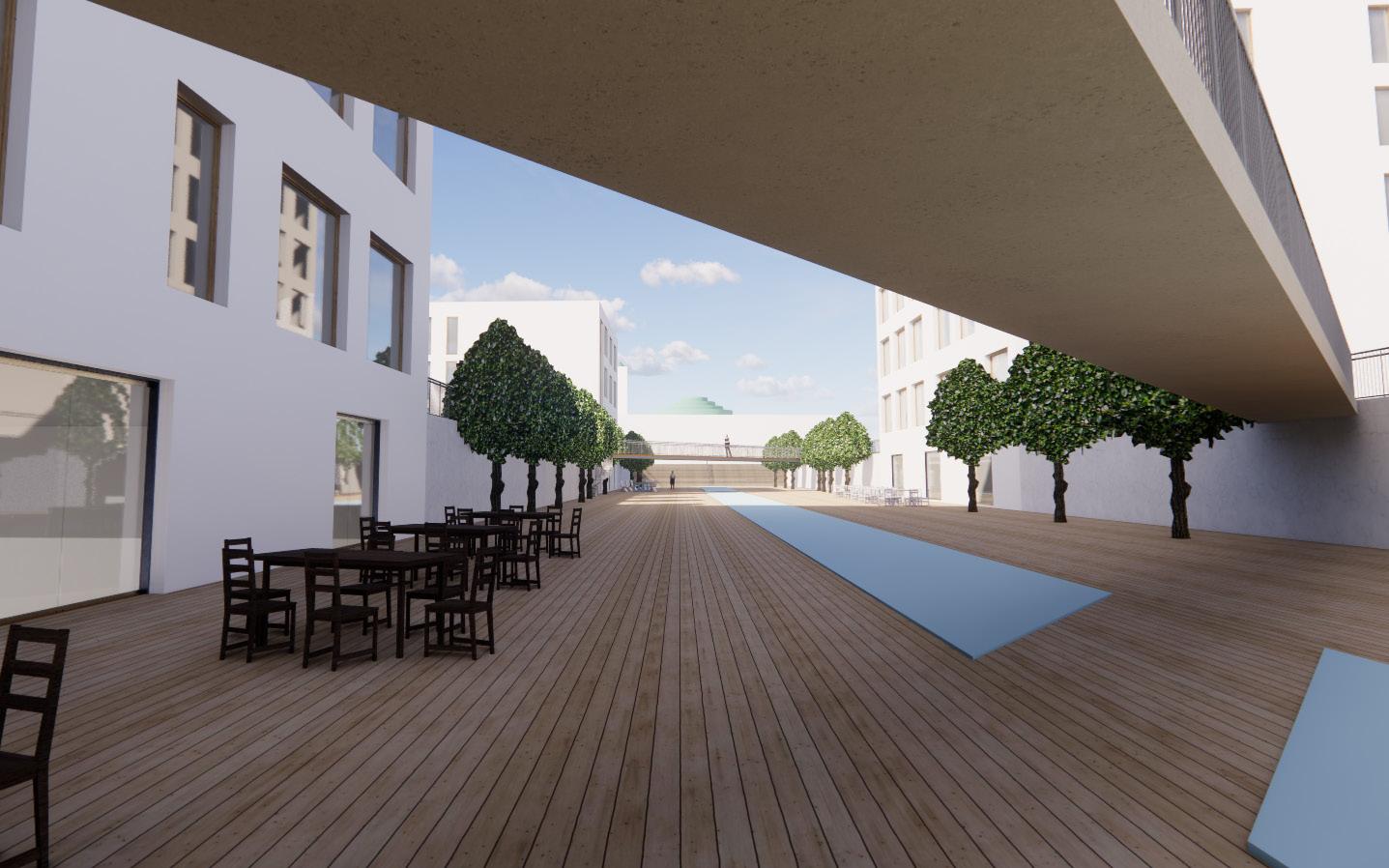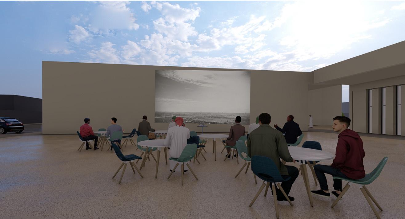The sunken boulevard located in gutech campus. It is a commercial zone that gathers between religion, education, and entertainment functions with a nature blessing all along the pathway. It is a mixture between our history and modernity, as the idea was inspired by the falaj (water channel in the old veleges)