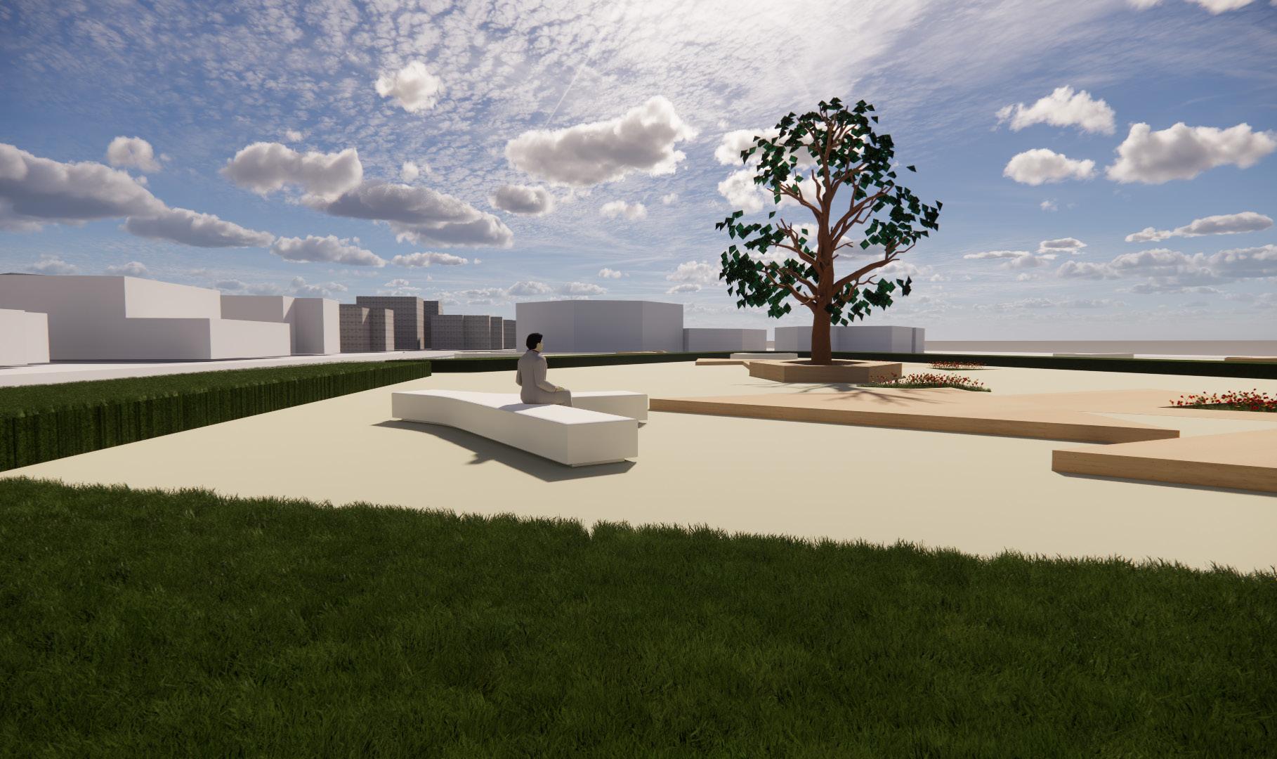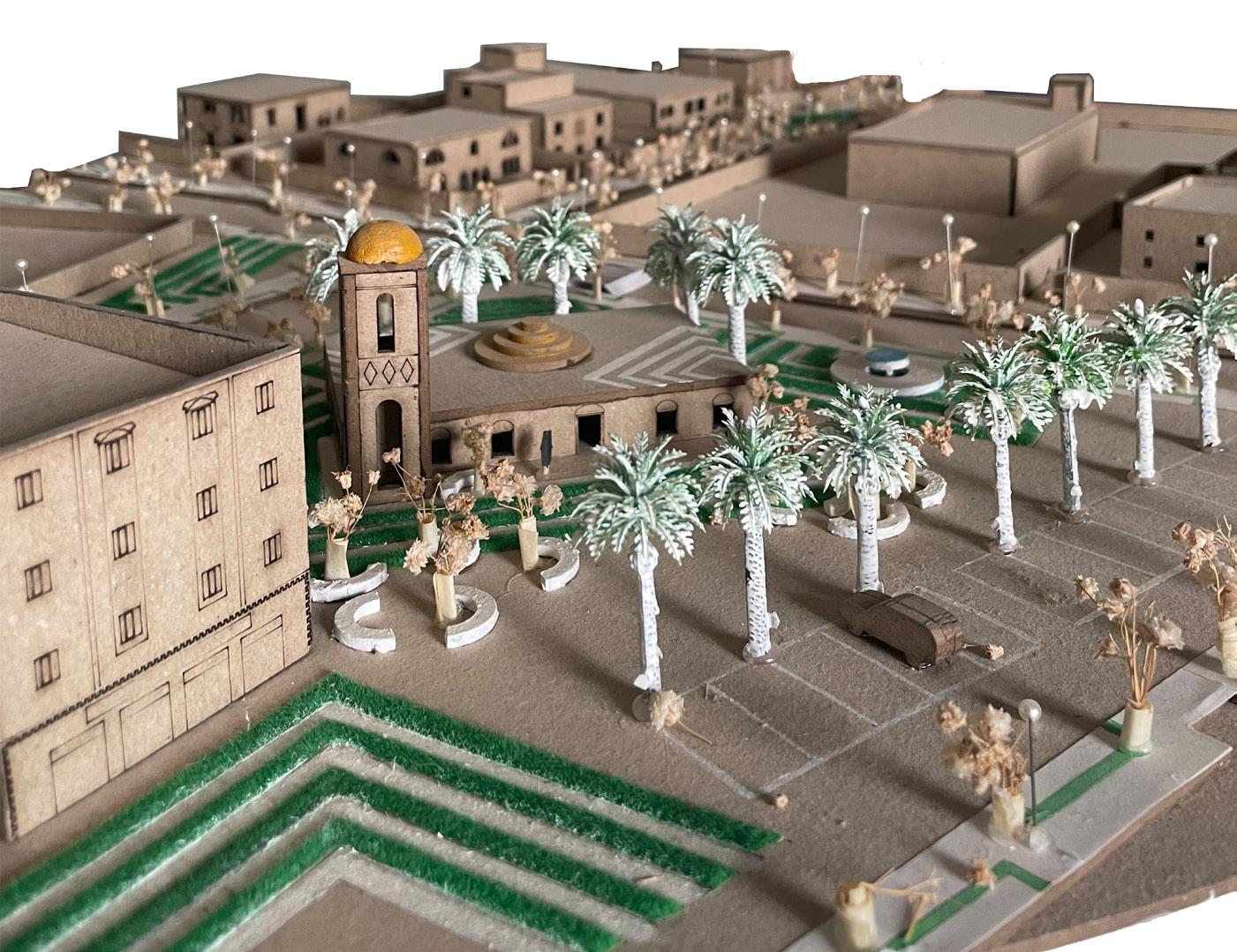3d Model that illustrates the redesign of Al Ghufran mosque neighborhood. The white color represents the new design that have been added to the region.