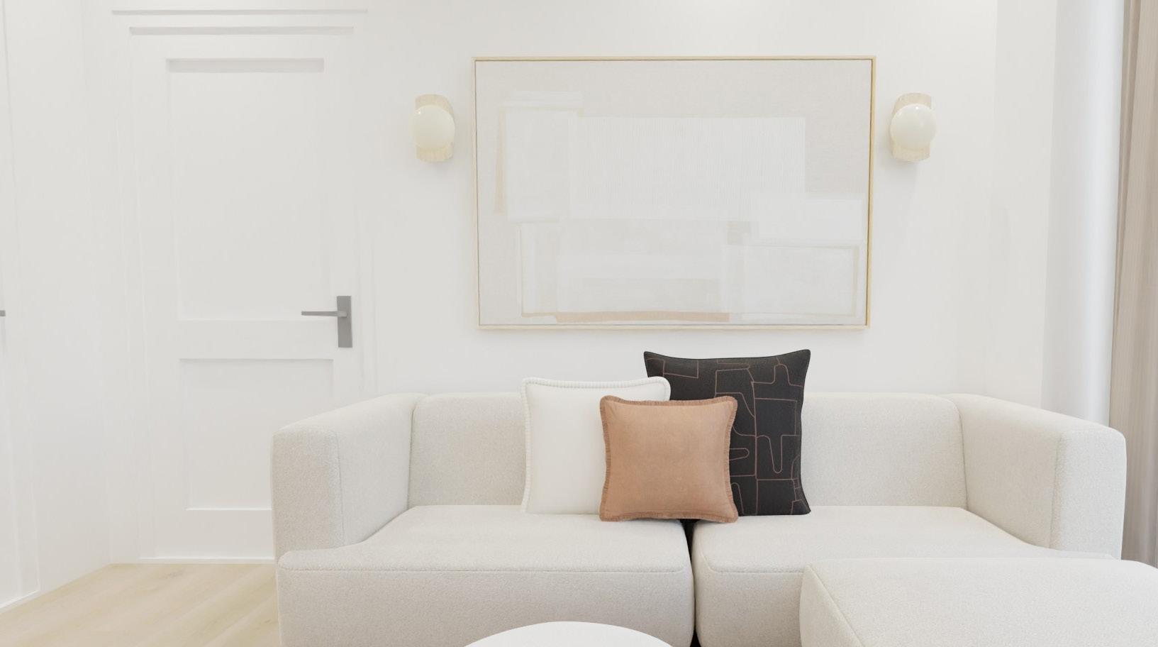 The interiors of this home reflect a cozy and bright space with touches of modern Scandinavian style. The client opted for subtle shades and textures inspired by nature.