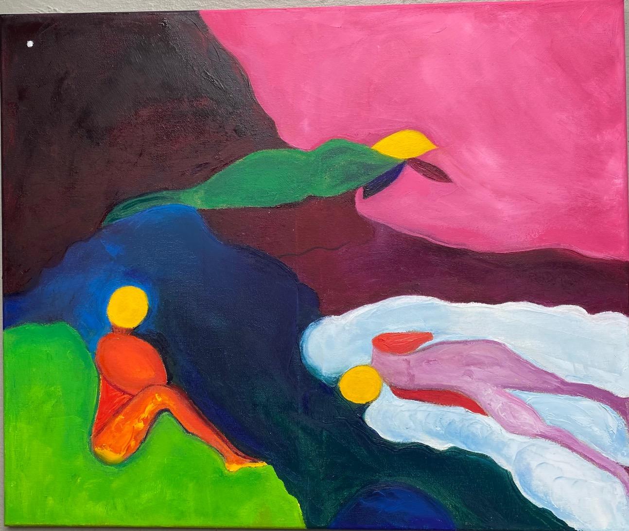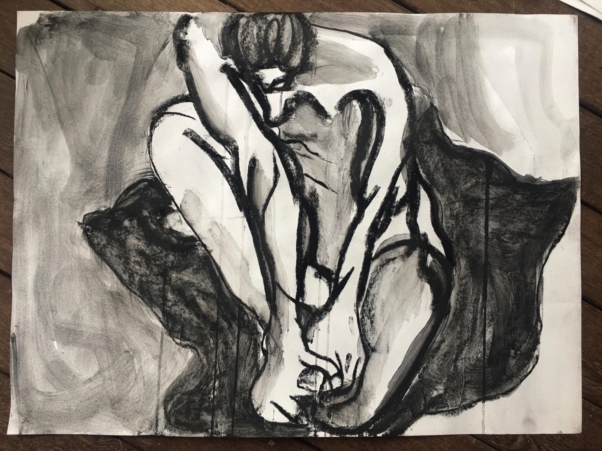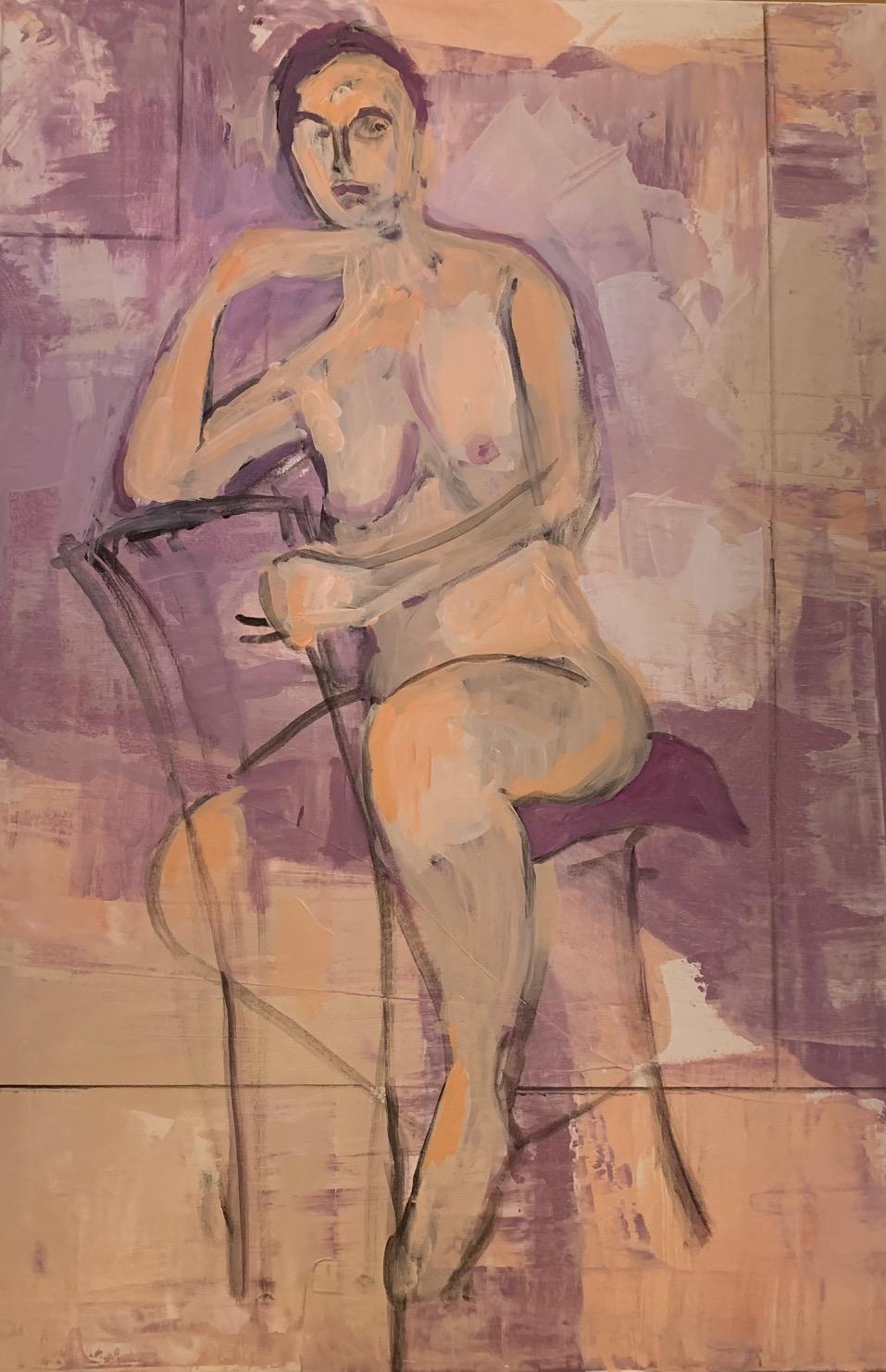 Figure in Purple with Skirt\ 30x20, acrylic on canvas