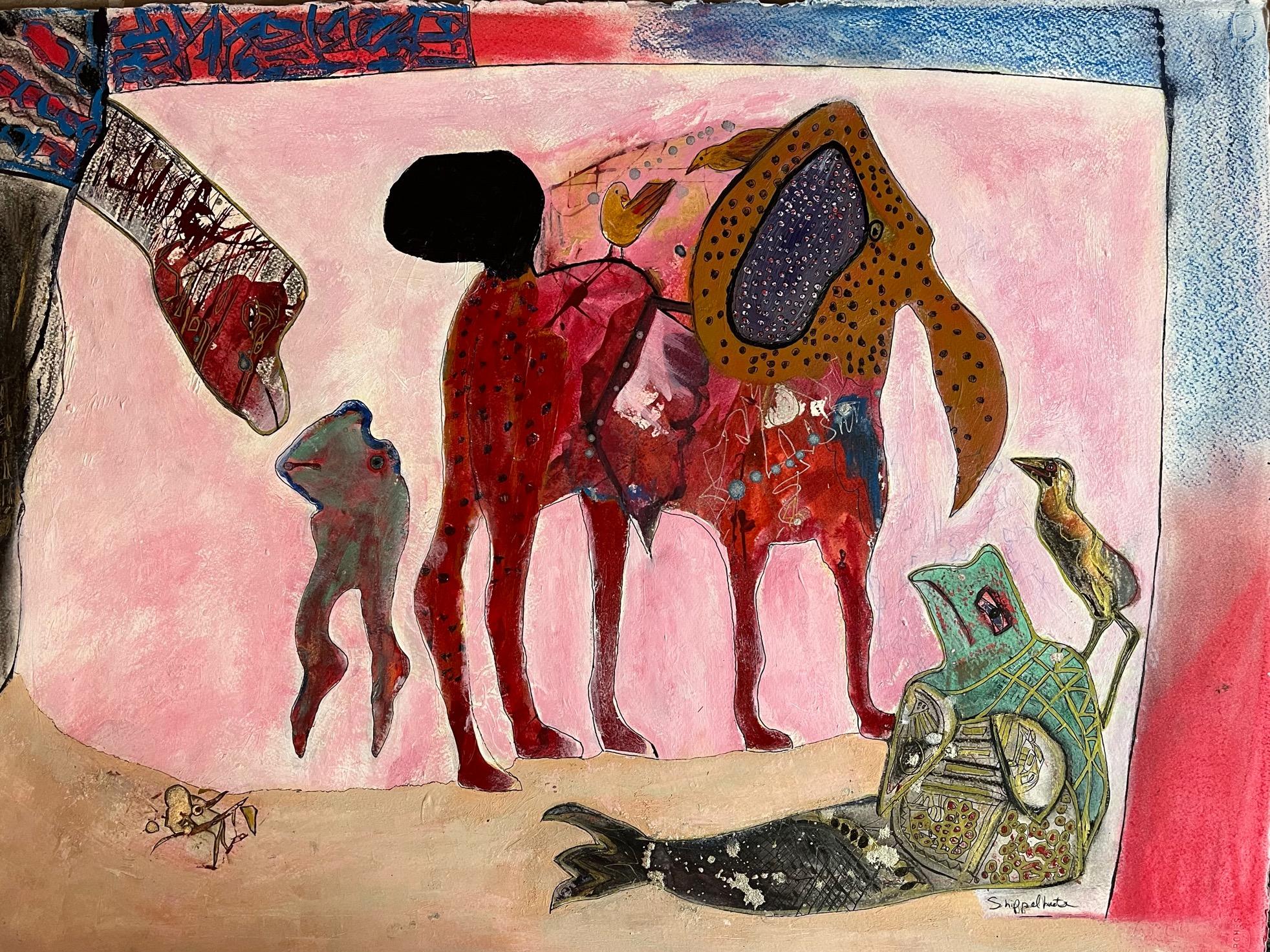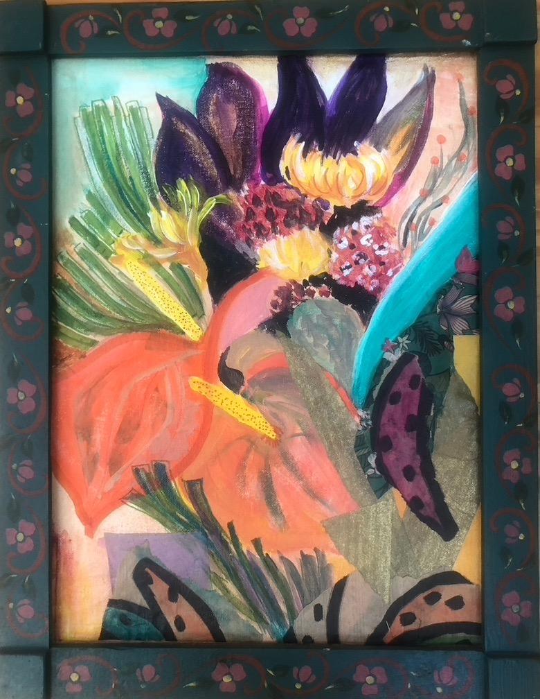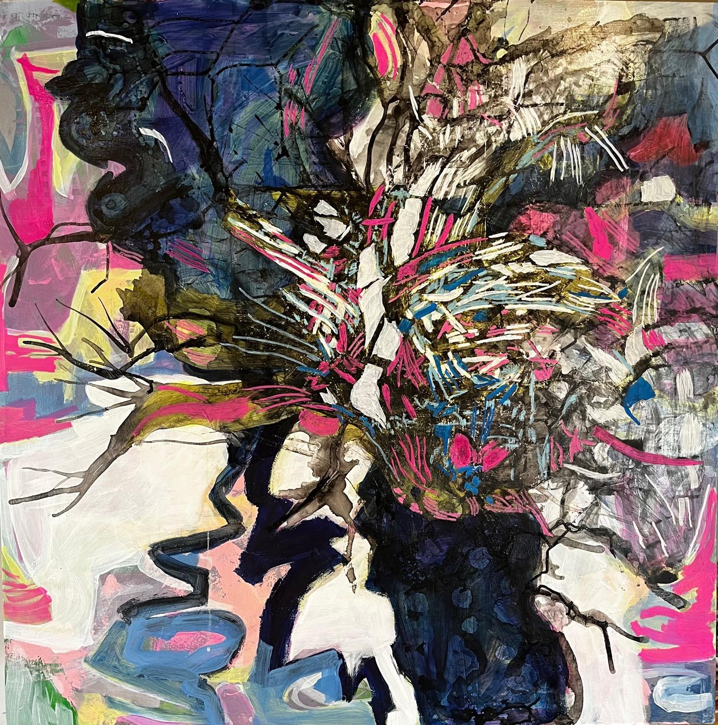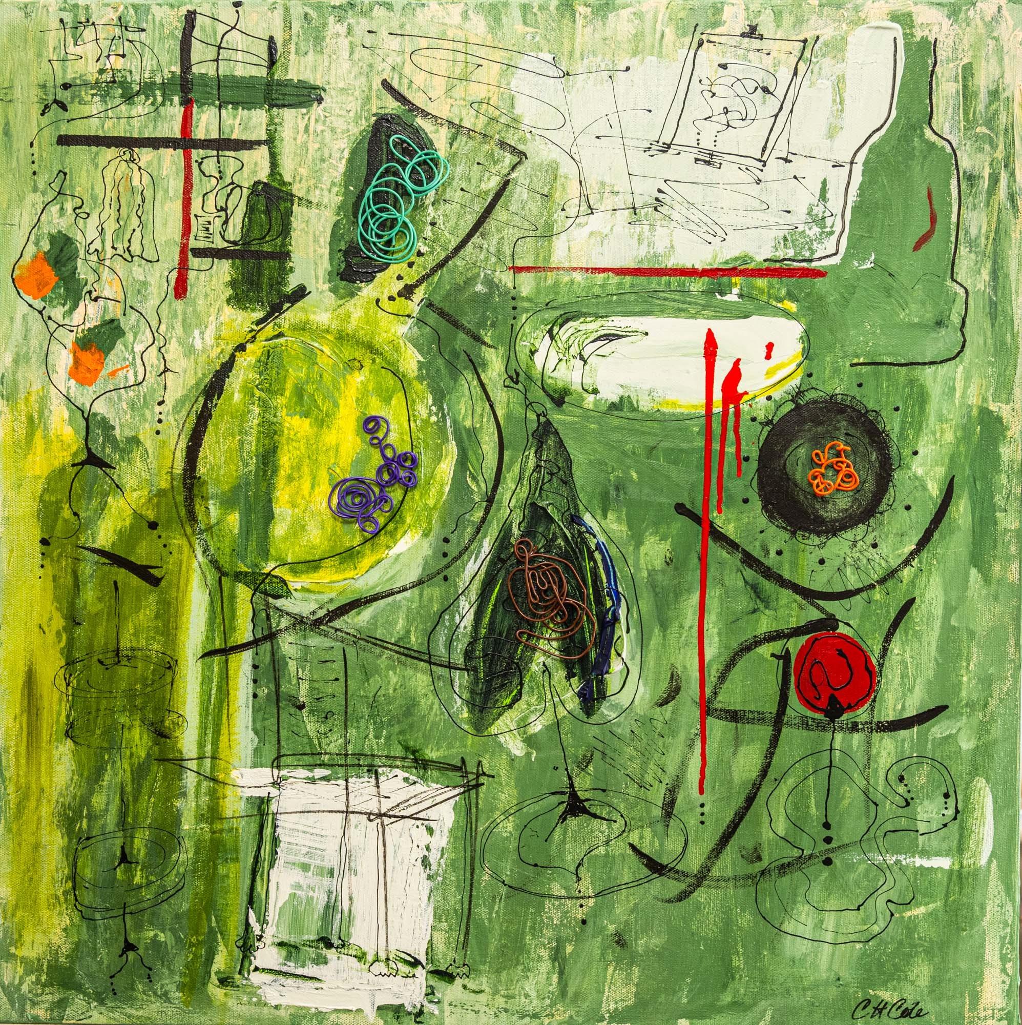In the Kitchen 25x25, mixed media with Acrylic on Canvas