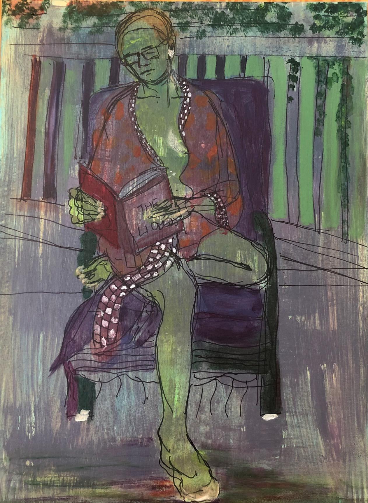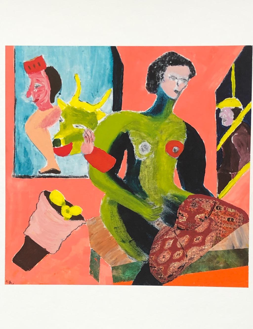 Green Nude With Chagall, Print (2021) 24”x24”, acrylic and collage on wood
