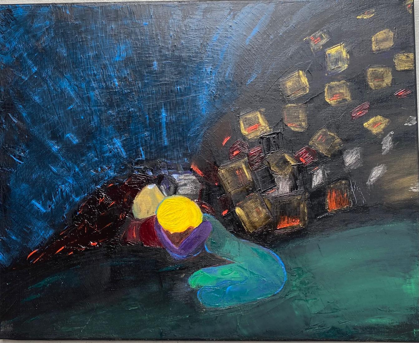 The Necklace (2023) 20”x W16” oil, cold wax on canvas