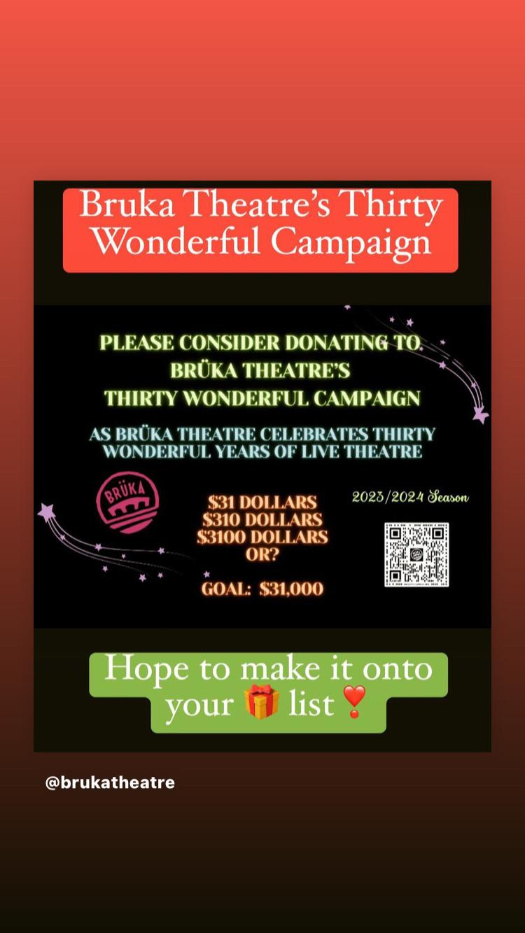Cheers & respect to all who have gone before us and to those who may follow in our footsteps. It is an honor to serve the community by producing and creating for Brüka Theatre.