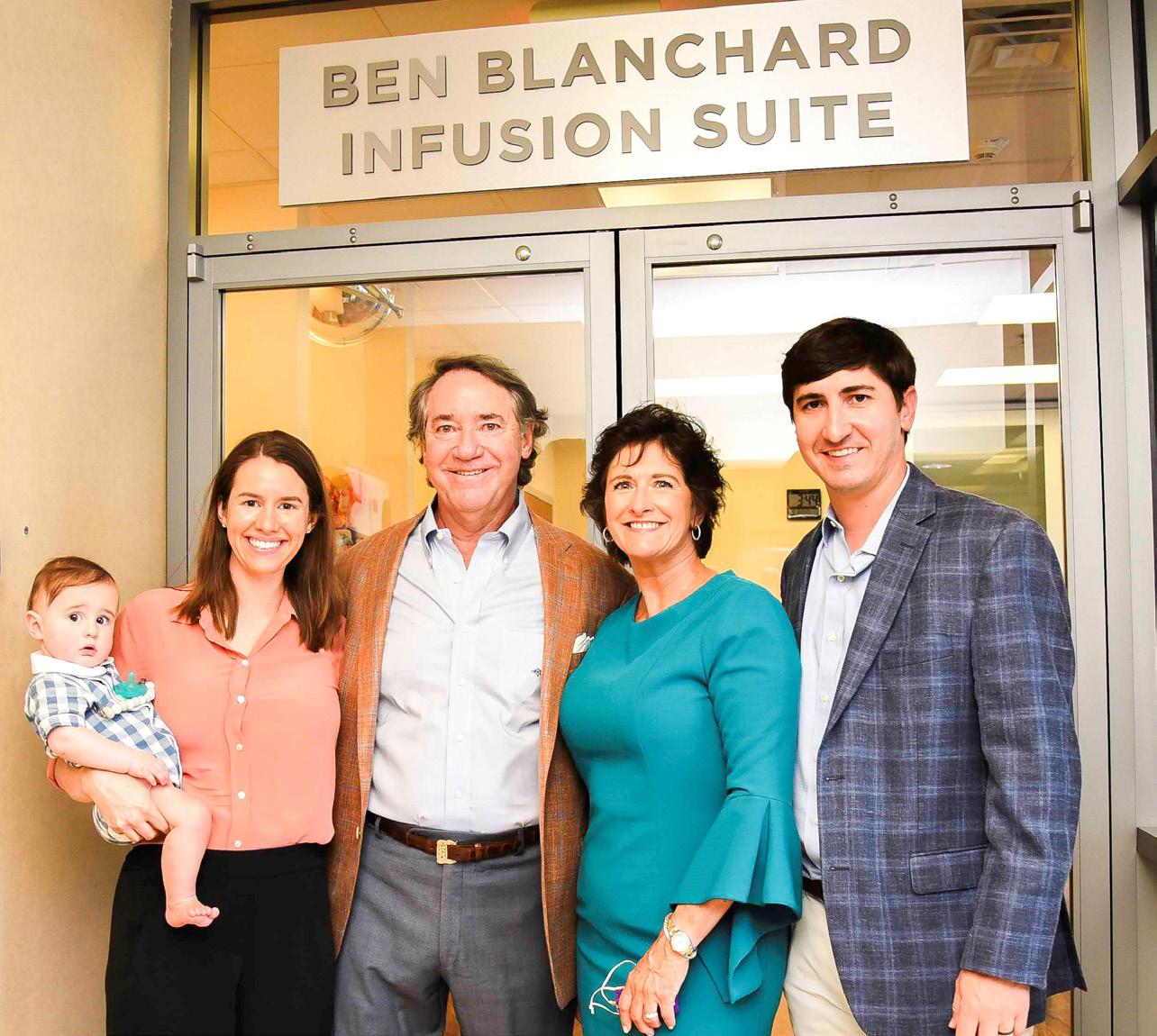 Motivated by the exceptional care Ben received from Dr. Saux, the family wanted to pay it forward by helping fund prevention and patient support services, such as free community screenings, including the annual Live Well Northshore event. Additionally, their gift funds support services including nutritional counseling, transportation assistance and other emotional and financial needs. In honor of Ben and his family, and in recognition of their generous gift, the Mary Bird Perkins infusion area in Covington is permanently recognized as the Ben Blanchard Infusion Suite.