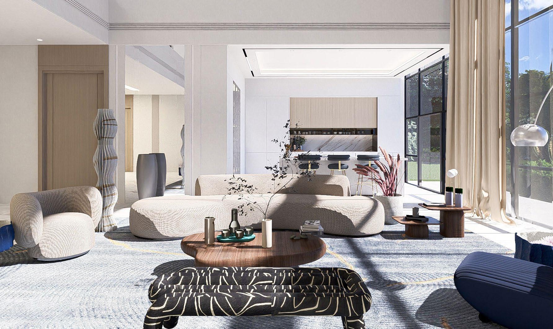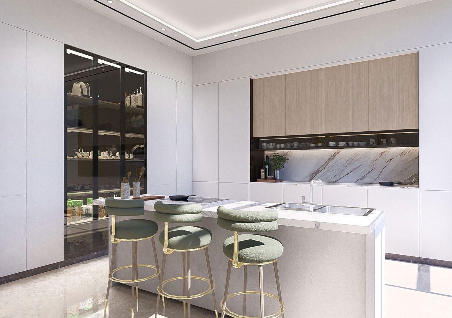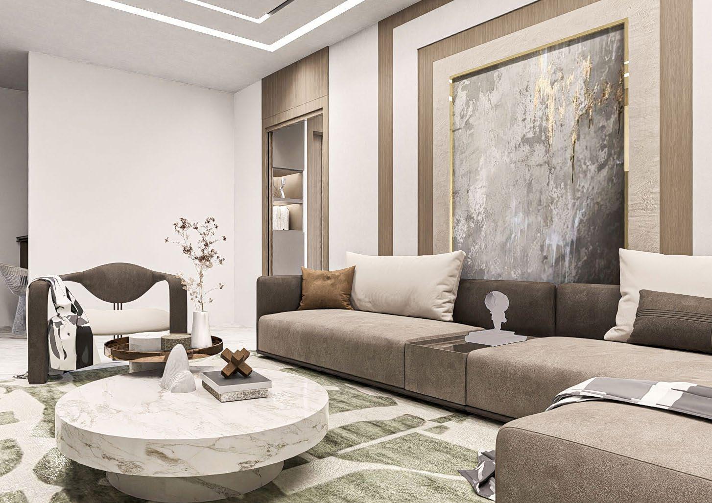 This high-end private residence in Al Aweer, Dubai, showcases an elegant blend of mod ern luxury and classical influences. The design seamlessly integrates contemporary elements with timeless touches, creating a sophisticated and opulent living environment.